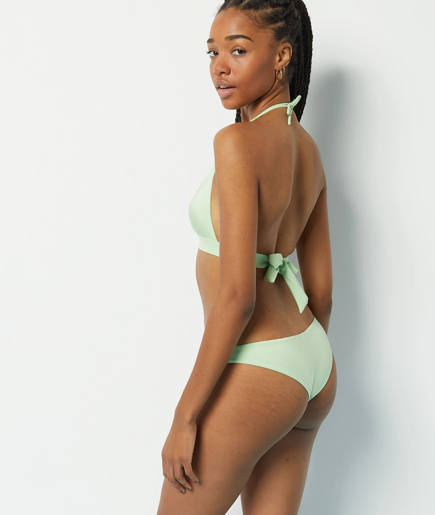 Pour un outfit beachwear sexy et élégant : optez pour ce brésilien orné d’un détail bijou et d’une matière brillante. Taille mi-haute et légèrement échancré, il dessine le ventre et galbe la fesse.