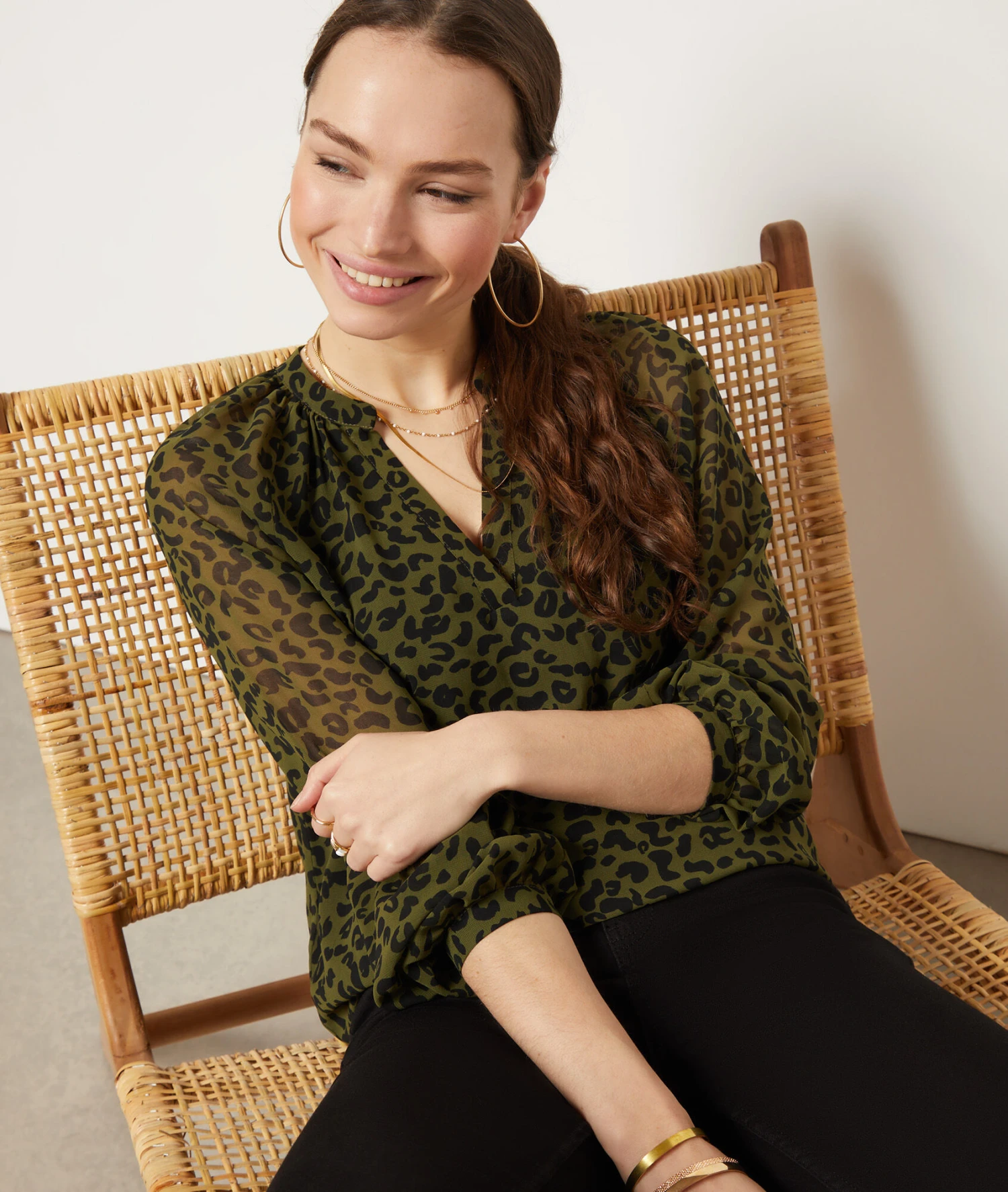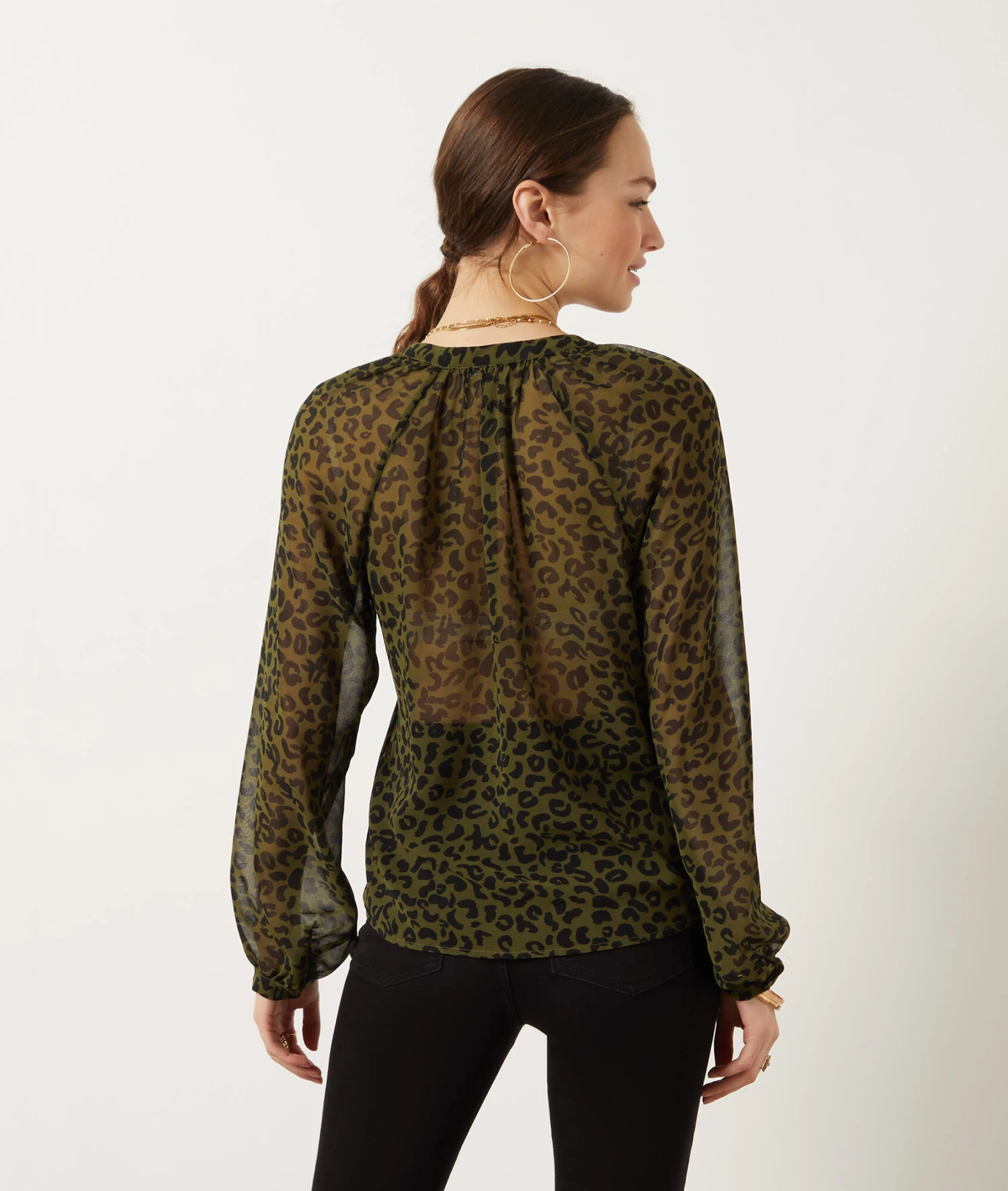Cette blouse à col V et manches longues dévoile un sublime imprimé animalier et joue sur la transparence, pour un outfit sexy et tendance.