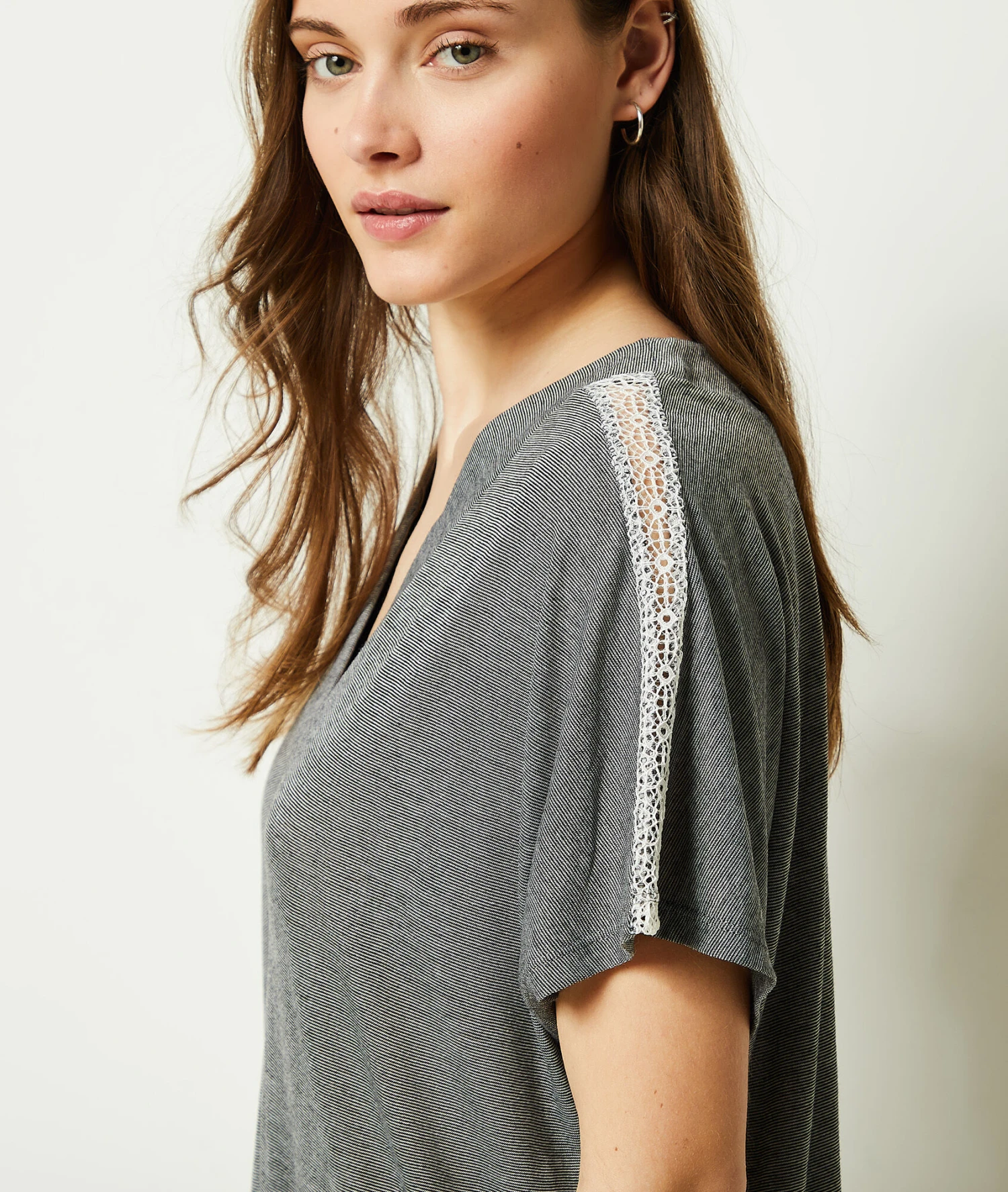La matière principale de ce produit contient 50% de viscose responsable. La viscose responsable est une matière réalisée à partir de pulpe de bois issue de forêts gérées durablement. Son processus de fabrication nécessite moins d’eau, d’énergie et de produits chimiques.