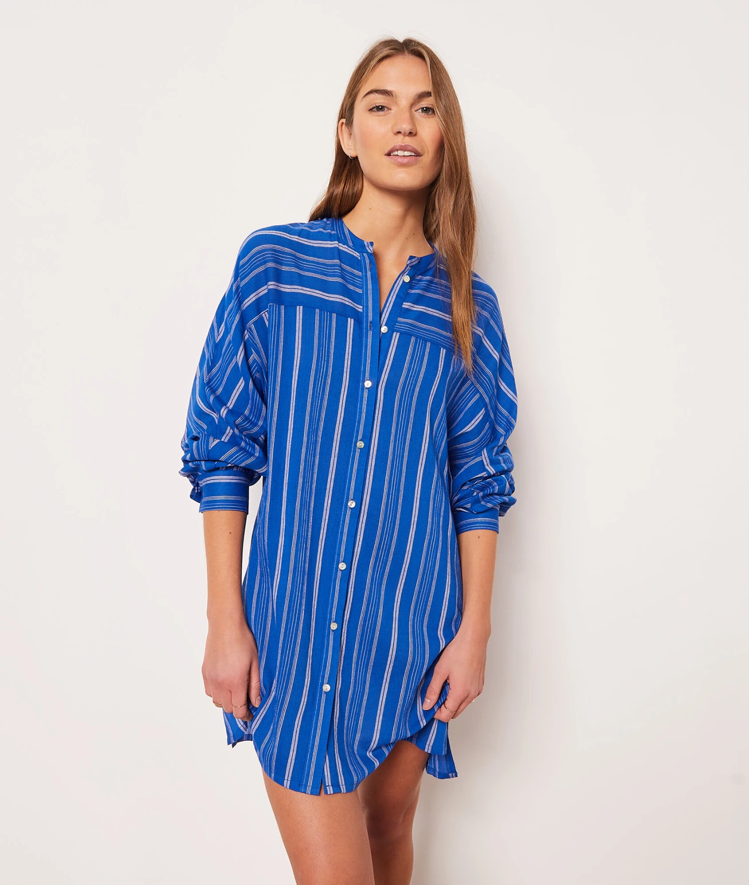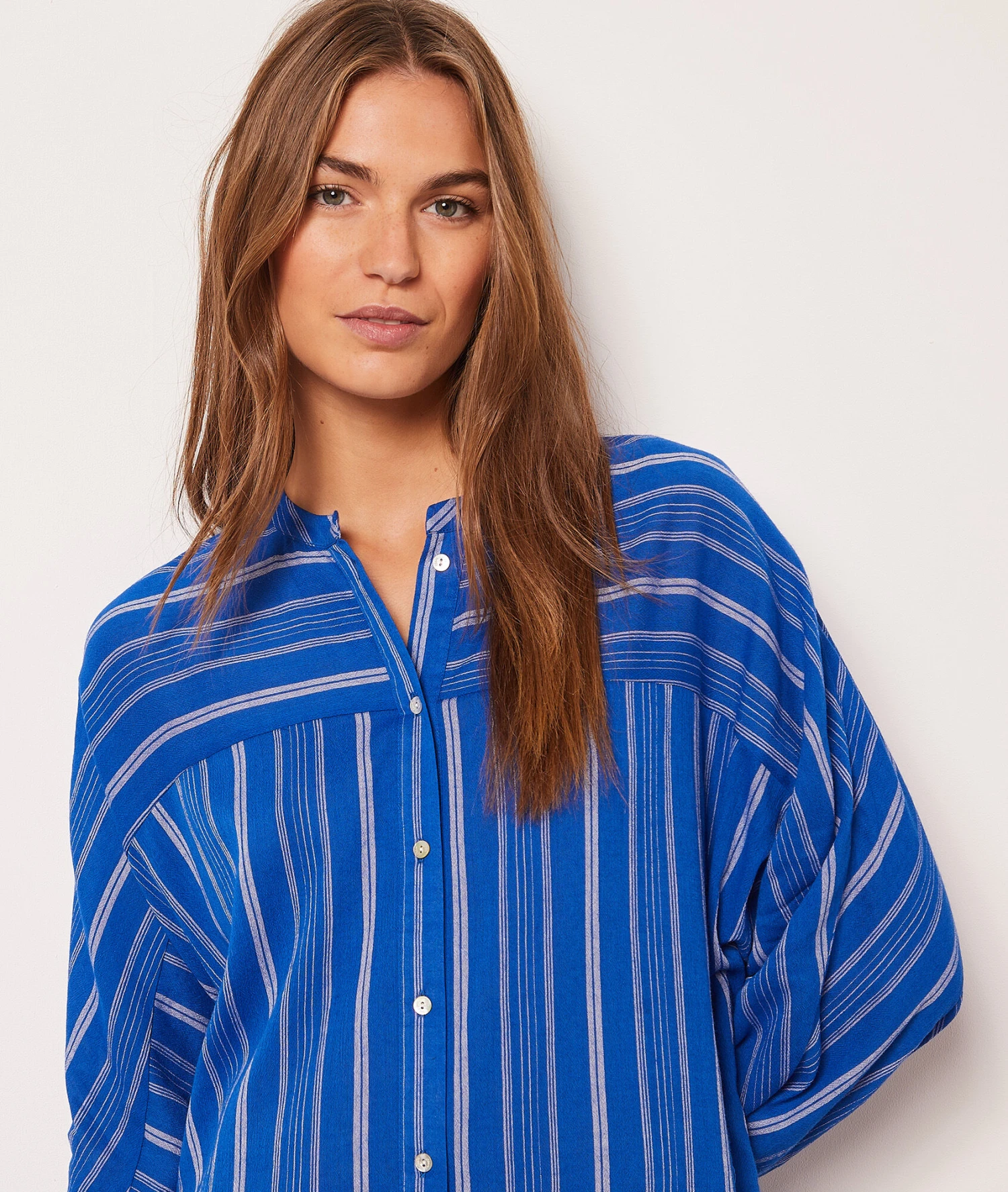 Motif coup de cœur. Optez pour cette chemise de nuit à col V et manches longues. Munie de fentes sur les côtés, elle dévoile un sublime imprimé asymétrique pour des nuits légères et stylées.