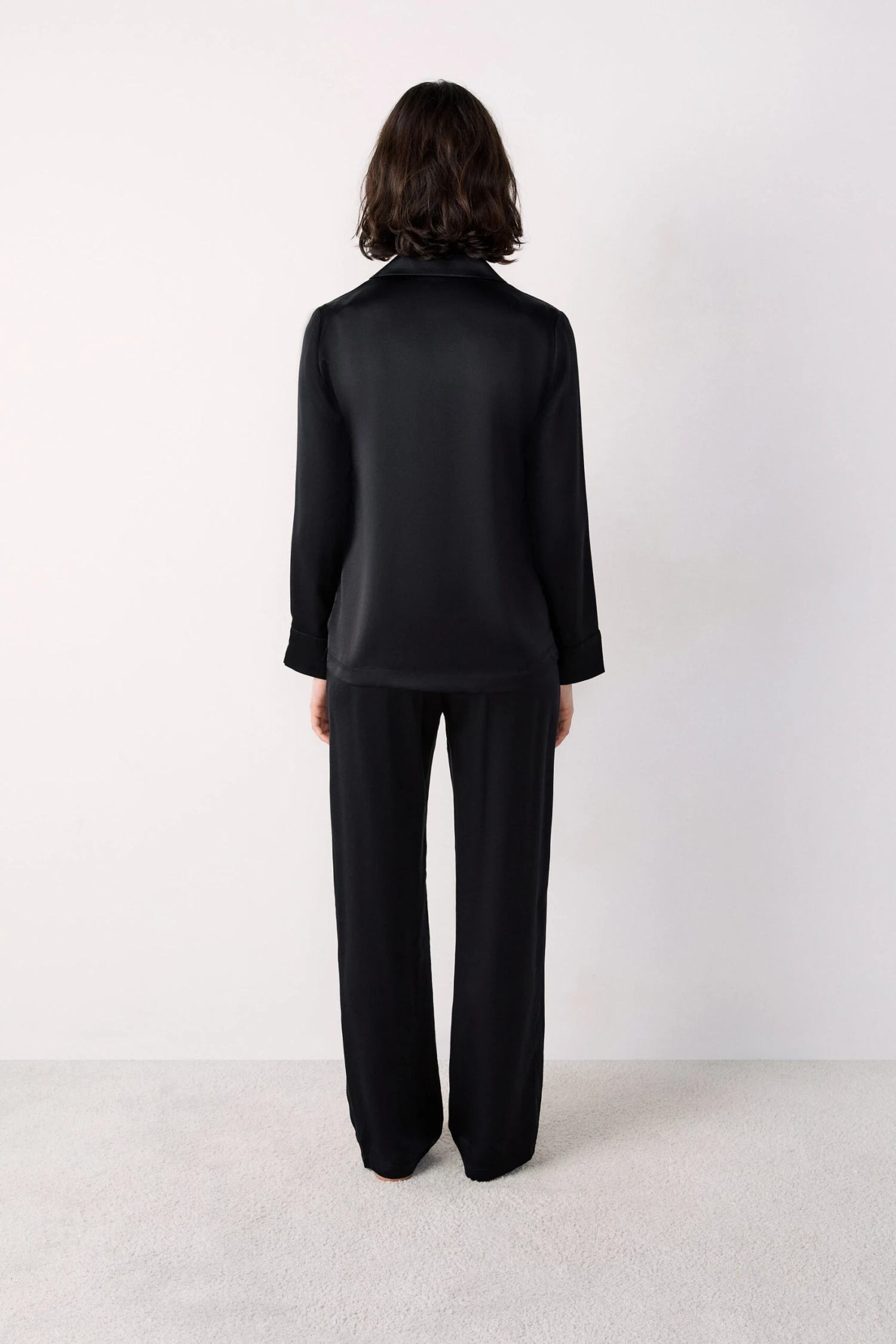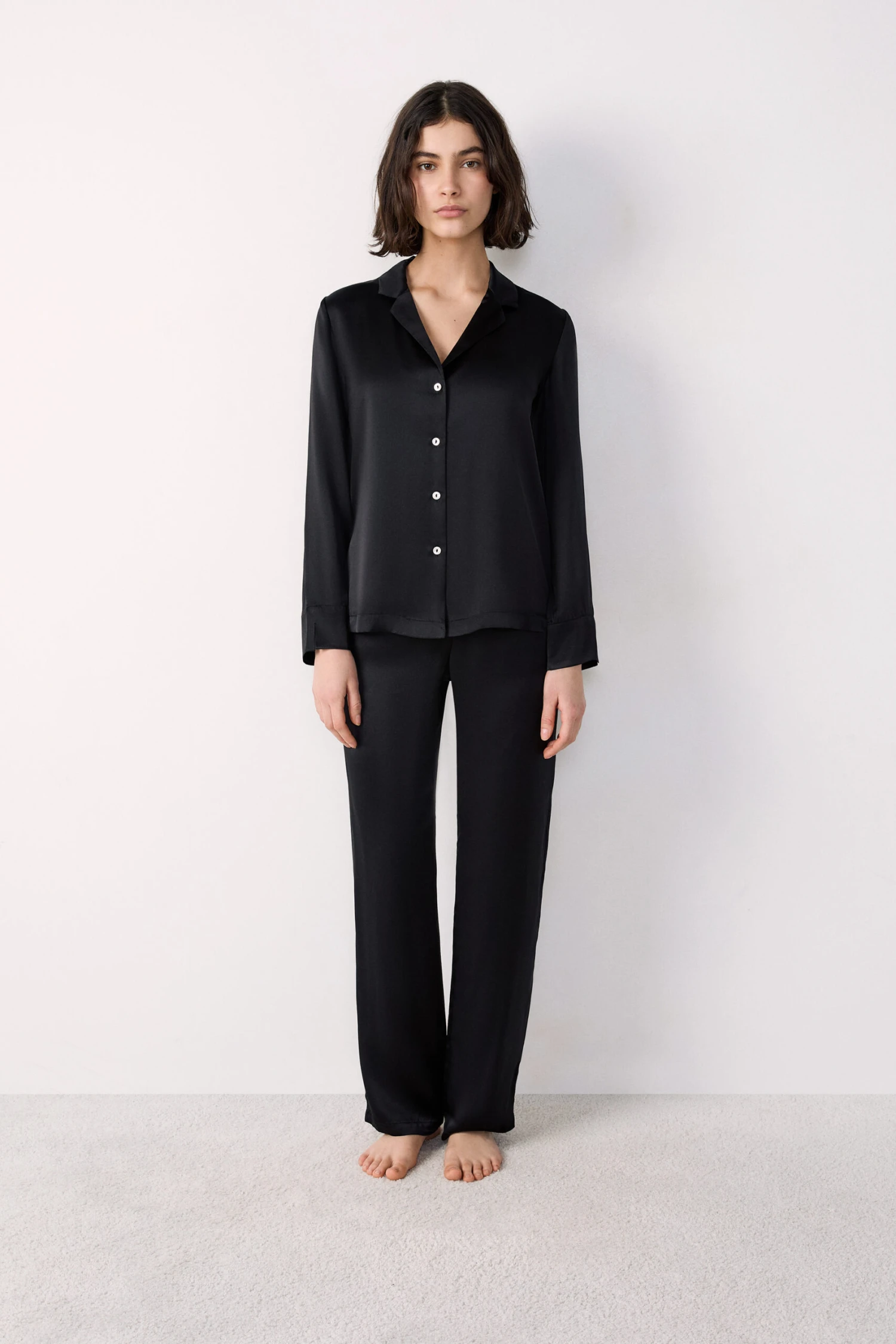 Fluide et légère, cette chemise de pyjama en soie dévoile un décolleté sublime tout en promettant des nuits douces et chics.