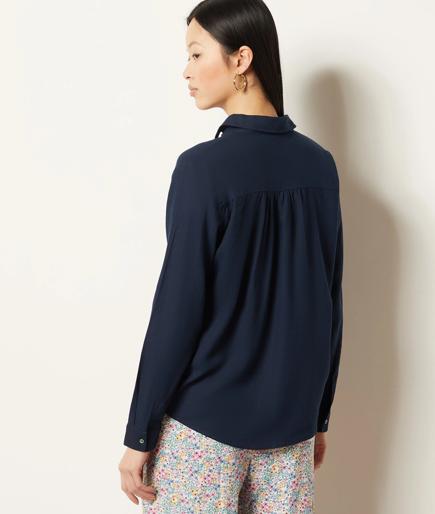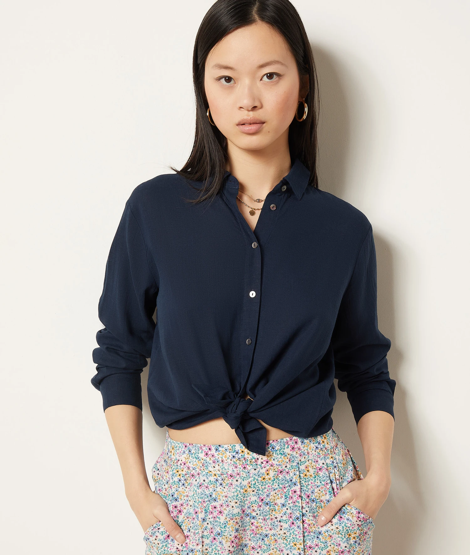 Une matière vaporeuse en lin mélangé, pour des looks d’été empreints de légèreté. Cette chemise fluide et oversize est munie d’une fermeture boutonnée et de manches longues à poignets resserrés. A porter aussi nouée à la taille.