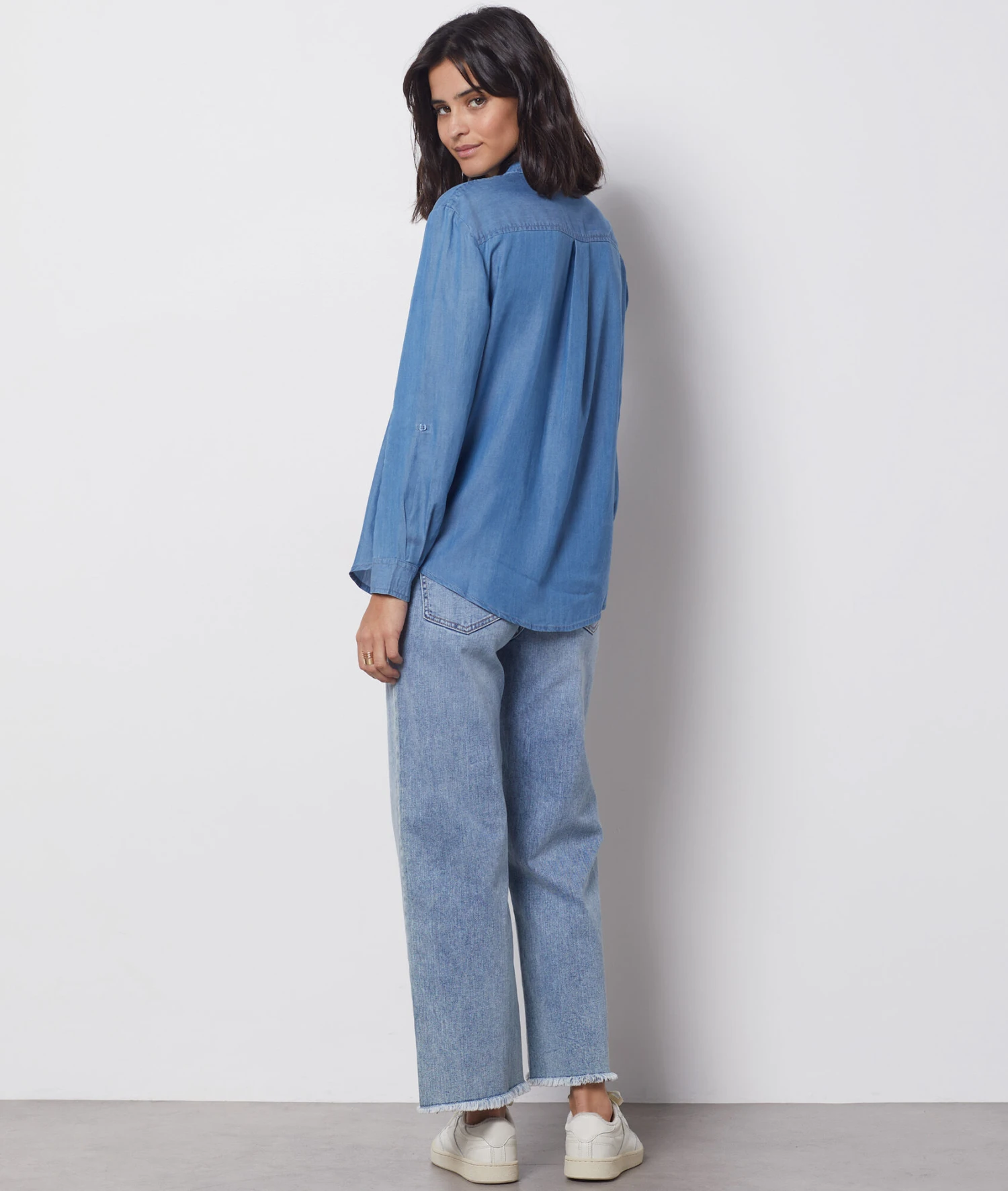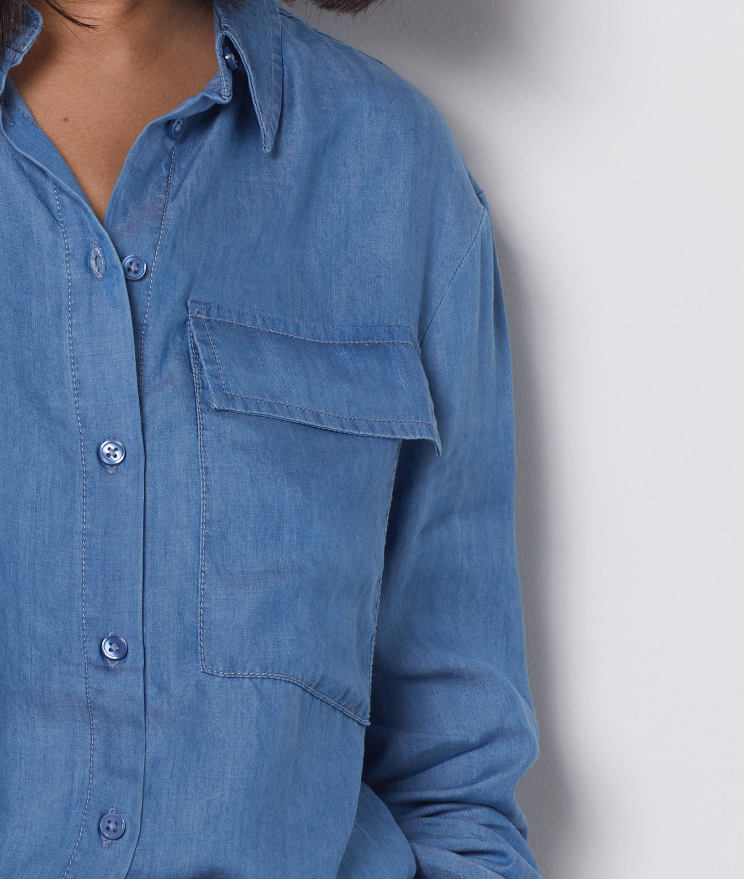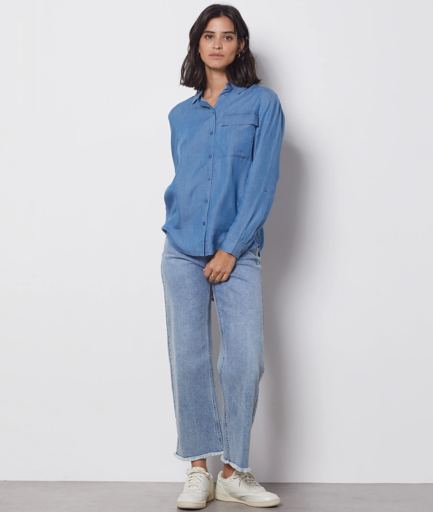 Incontournable, cette chemise effet denim à manches longues s’associe facilement à tous vos looks. On ne peut qu’être charmée par la simplicité de cet essentiel.