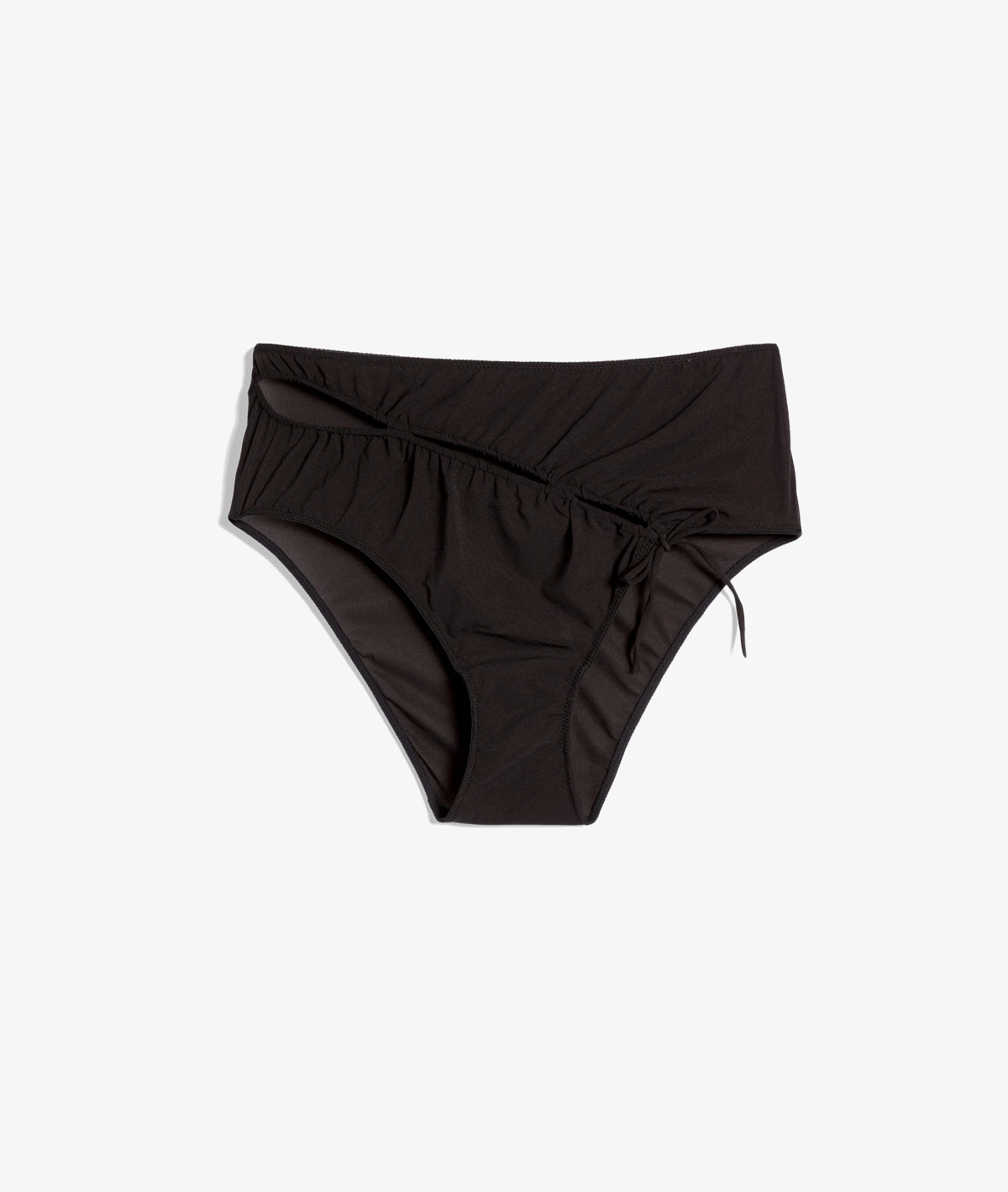 Découpes sensuelles et liens à nouer : la peau est délicatement dévoilée dans cette culotte taille haute moderne et ultra-tendance.