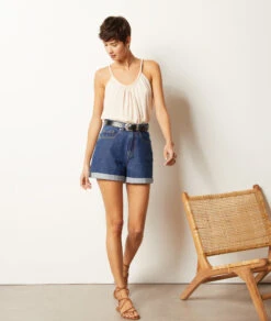 Le top léger et féminin idéal pour la période estivale. Muni d’un col rond et de fines bretelles tressées, il est très agréable les journées d’été. Associez-le à un jean pour la mi-saison ou à un short en denim pour les journées plus chaudes.