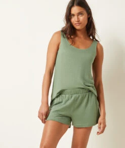 Un essentiel à avoir dans sa garde-robe de nuit. Sans manches et muni d’un col rond, craquez pour ce débardeur en jersey de lin pour des nuits douces et légères.
