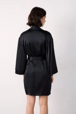Doux et élégant, ce déshabillé en soie se glisse à la perfection par-dessus un total look assorti et promet des nuits légères.