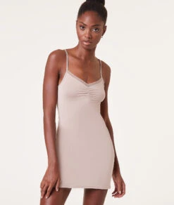 Délicatement bordé de dentelle : ce fond de robe doux et élégant est à glisser sous tous vos vêtements d’hiver.