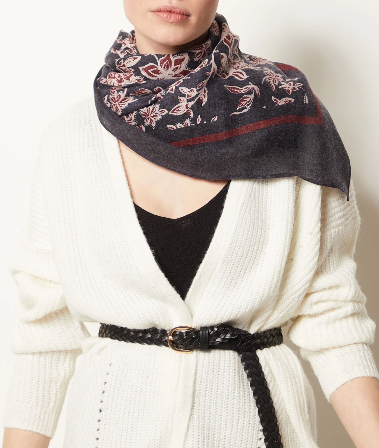 Un foulard fleuri à adopter autour du cou ou sur votre sac favori.