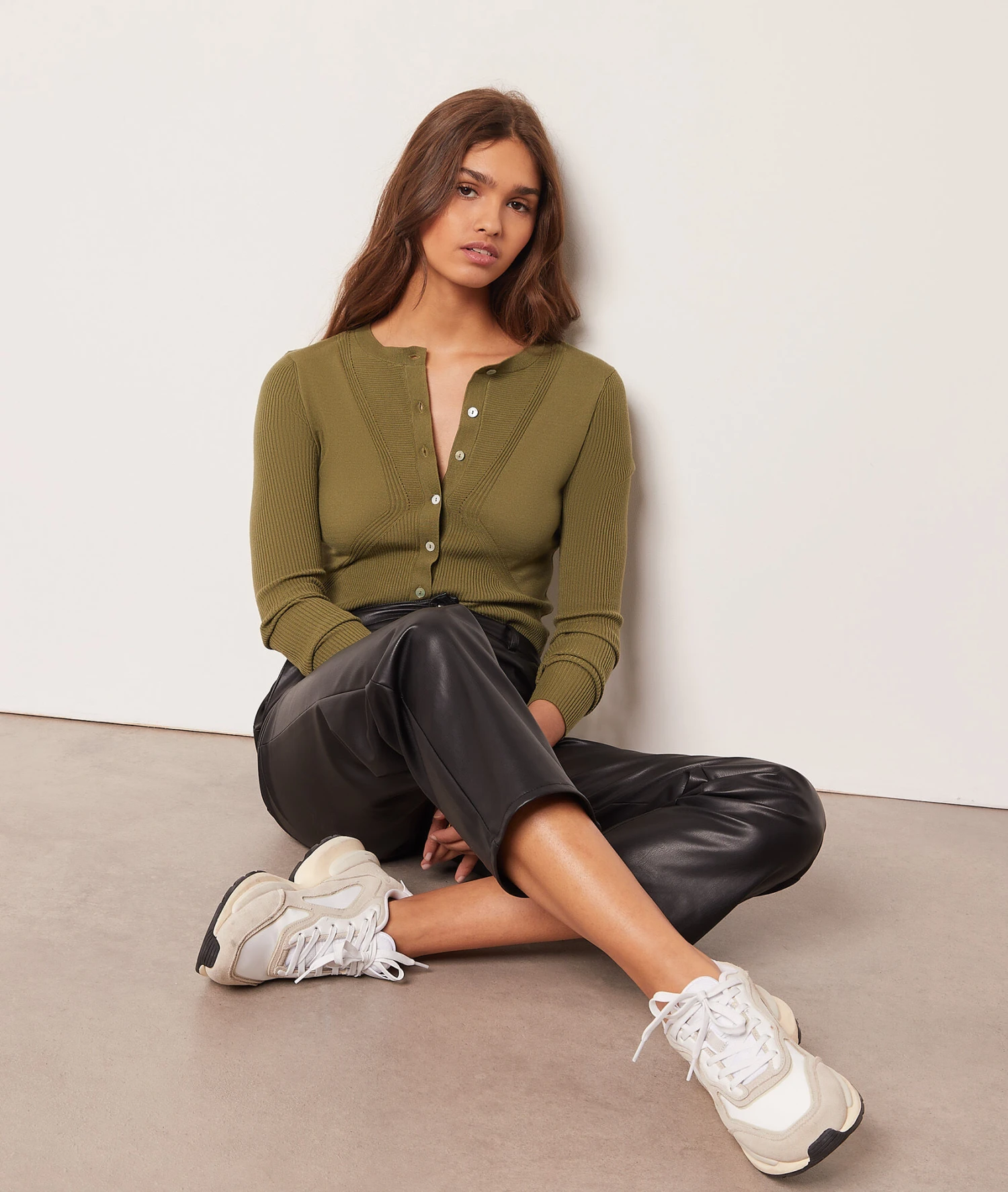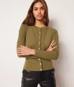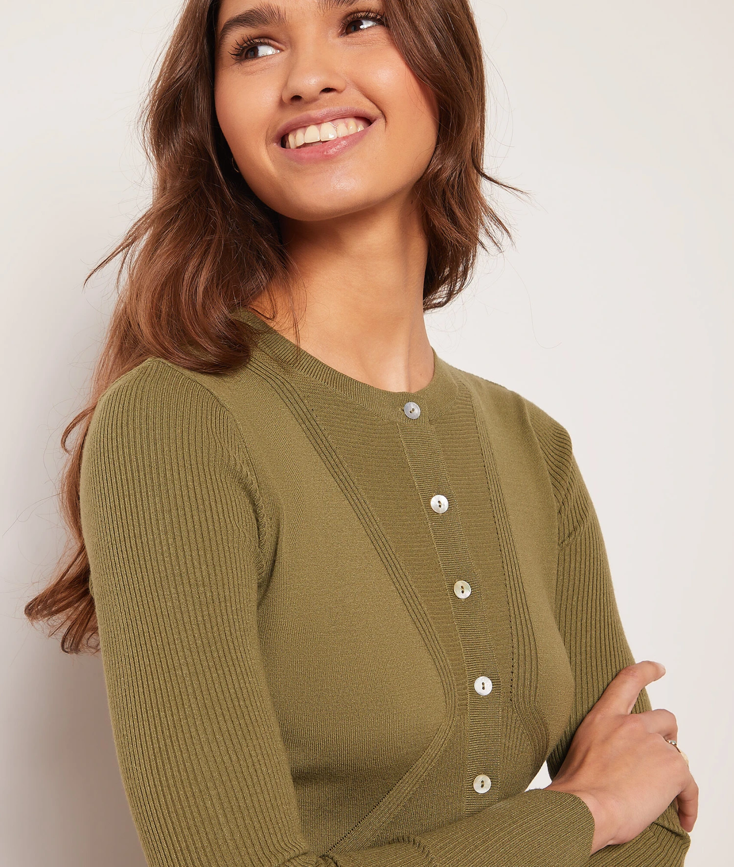 Muni d’un col rond et de manches longues, ce gilet en maille côtelée dévoile des empiècements lisses qui structurent la silhouette. Ouvert ou fermé, c’est un incontournable.