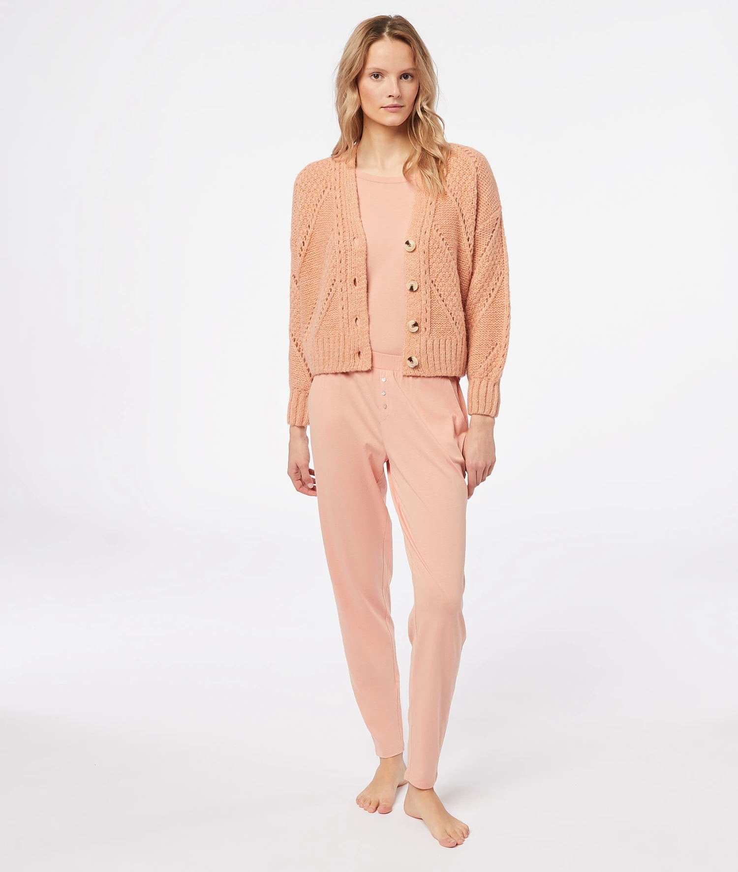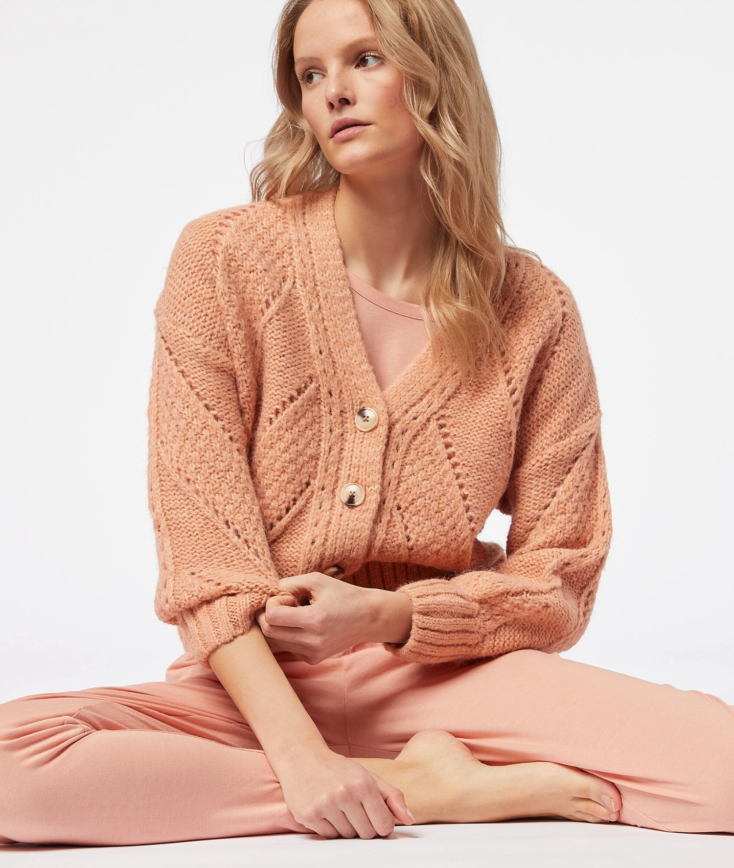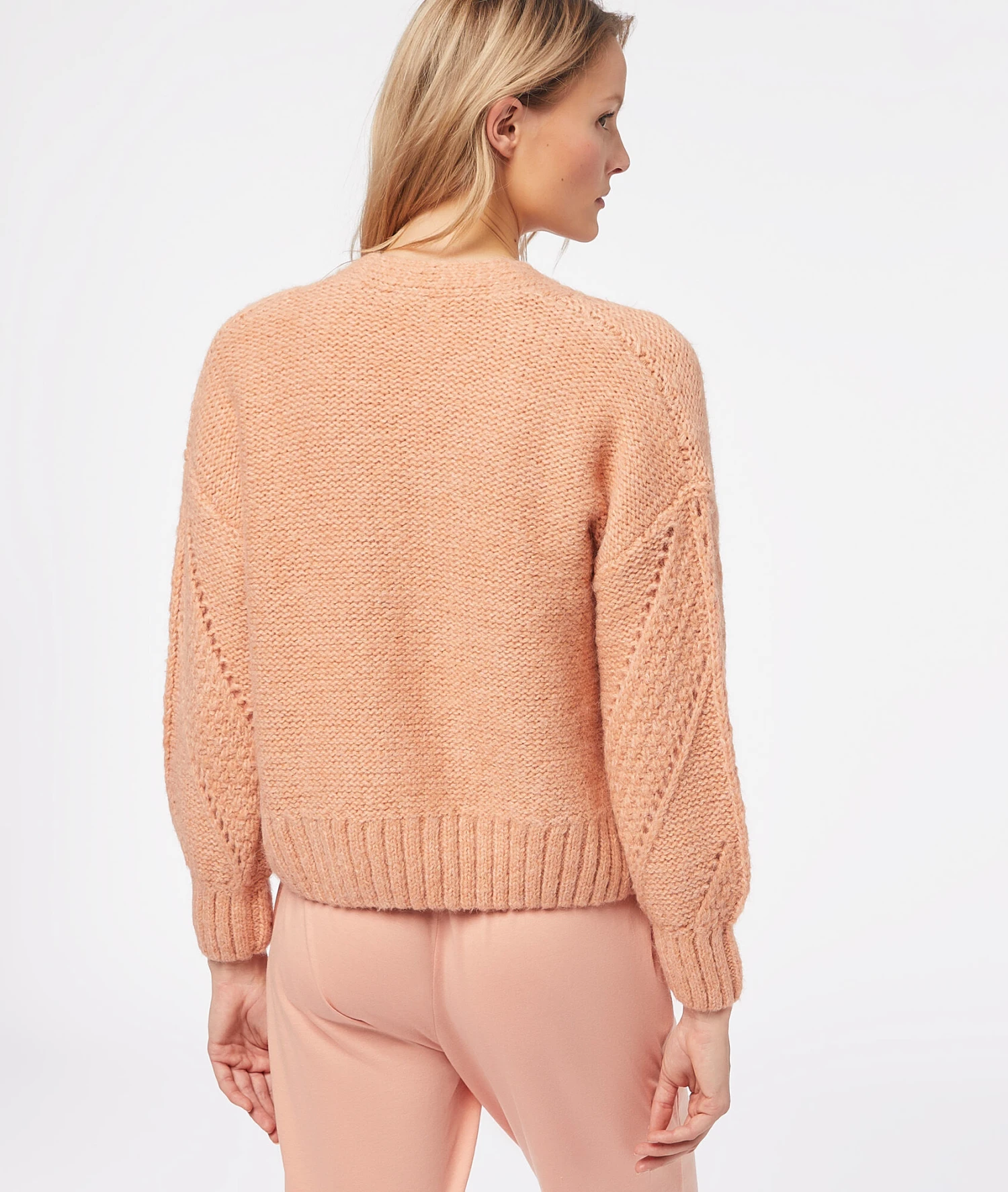Un gilet en maille épaisse et moelleuse, pour cocooner ou pour se réchauffer en douceur ! Muni de manches longues et d’une fermeture boutonnée, il dévoile des motifs ajourés.