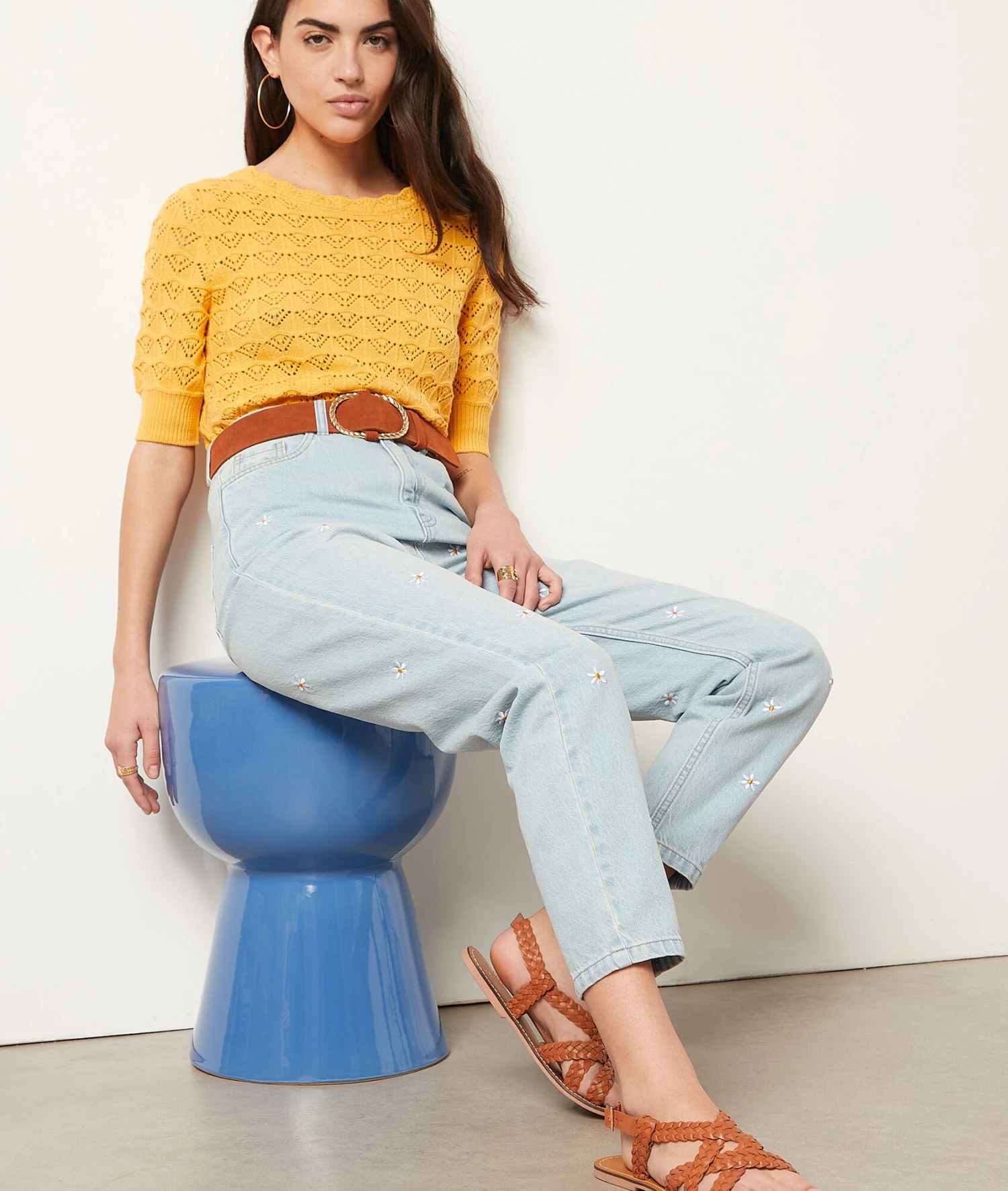 Ce jean se prête parfaitement à vos envies de style de mi-saison. Orné de petites fleurs, ce denim coupe carotte arbore une coupe loose pour un style casual et féminin.