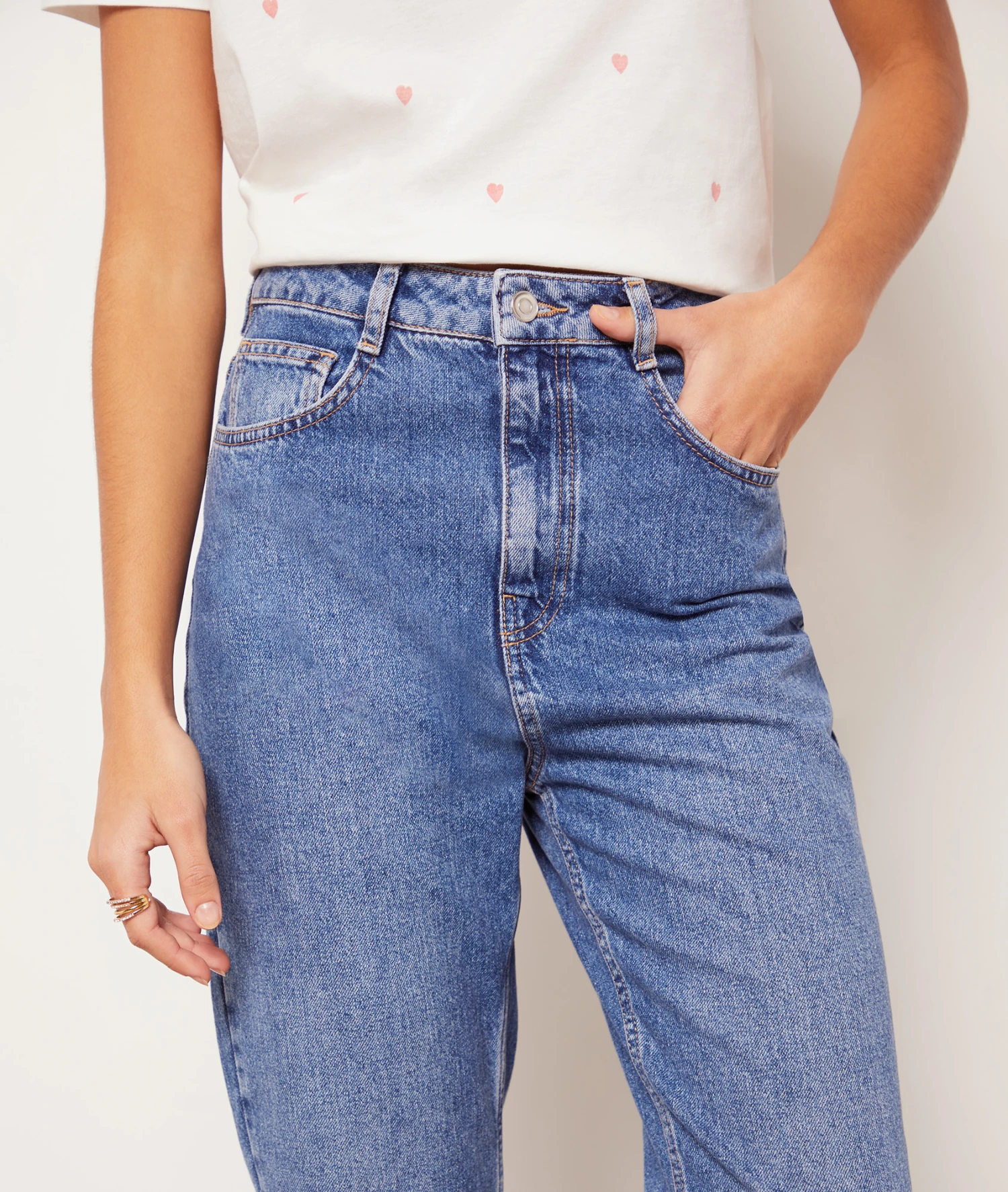 Confectionné en coton, soucieux de l’environnement et durable, ce jean mom incontournable du vestiaire promet un confort optimal tout au long de la journée et des looks toujours plus tendances.