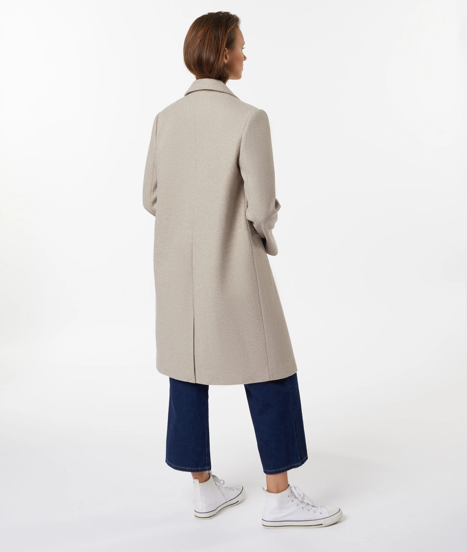 La silhouette est structurée dans ce manteau droit mi-long aux lignes empruntées au vestiaire masculin. Chic et intemporel, c’est l’incontournable des looks automne hiver.