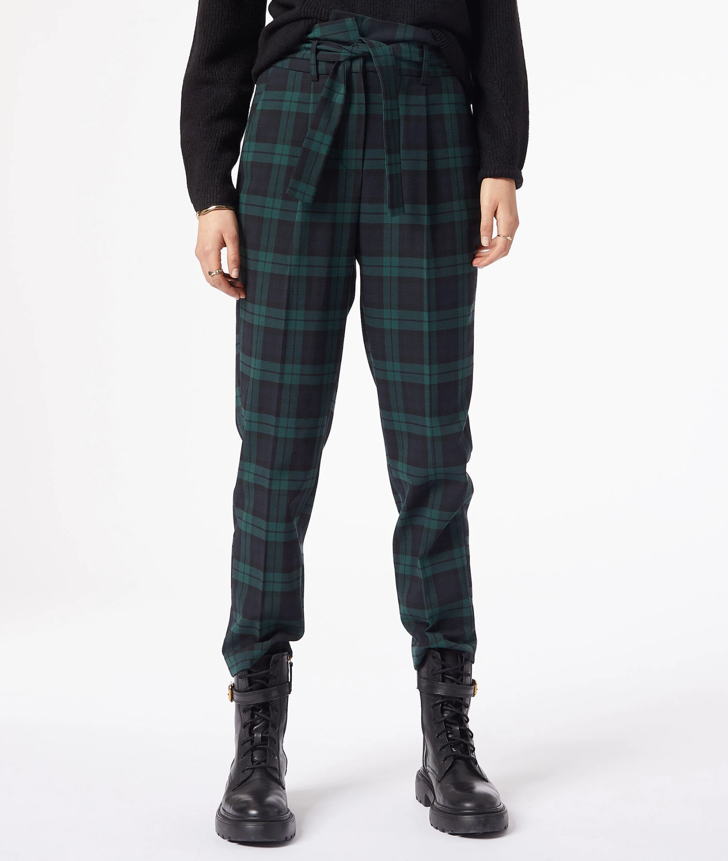 Le motif tartan tendance, mixé à une coupe carotte pour un pantalon taille haute cintré confort et stylé. A porter avec un pull en maille sobre pour un look tendance et casual.