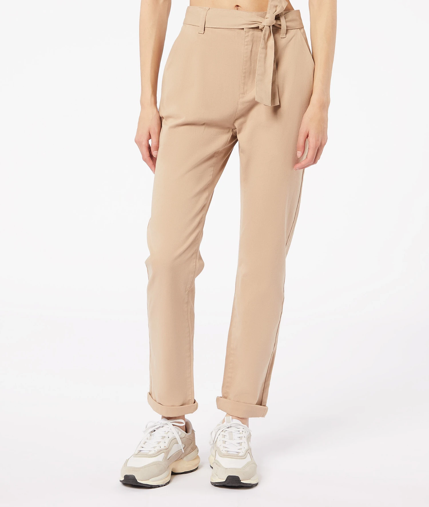 Muni d’une ceinture à nouer à la taille, ce pantalon chino taille haute se mixe à tous vos essentiels, pour des looks chics et tout en confort.