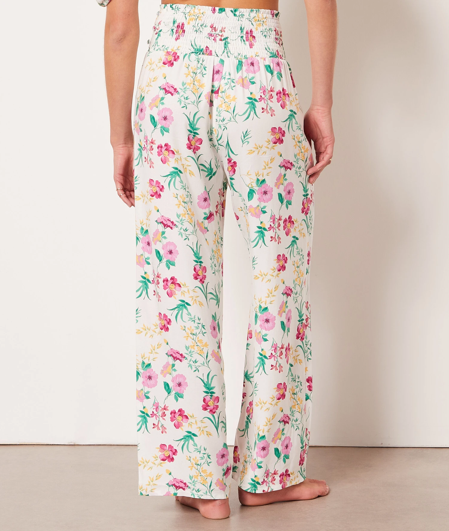 Une coupe oversize et une matière fluide pour un confort sans nom. Laissez-vous séduire par ce pantalon taille haute dévoilant un sublime imprimé fleur, pour l’arrivée des beaux jours et des nuits printanières.