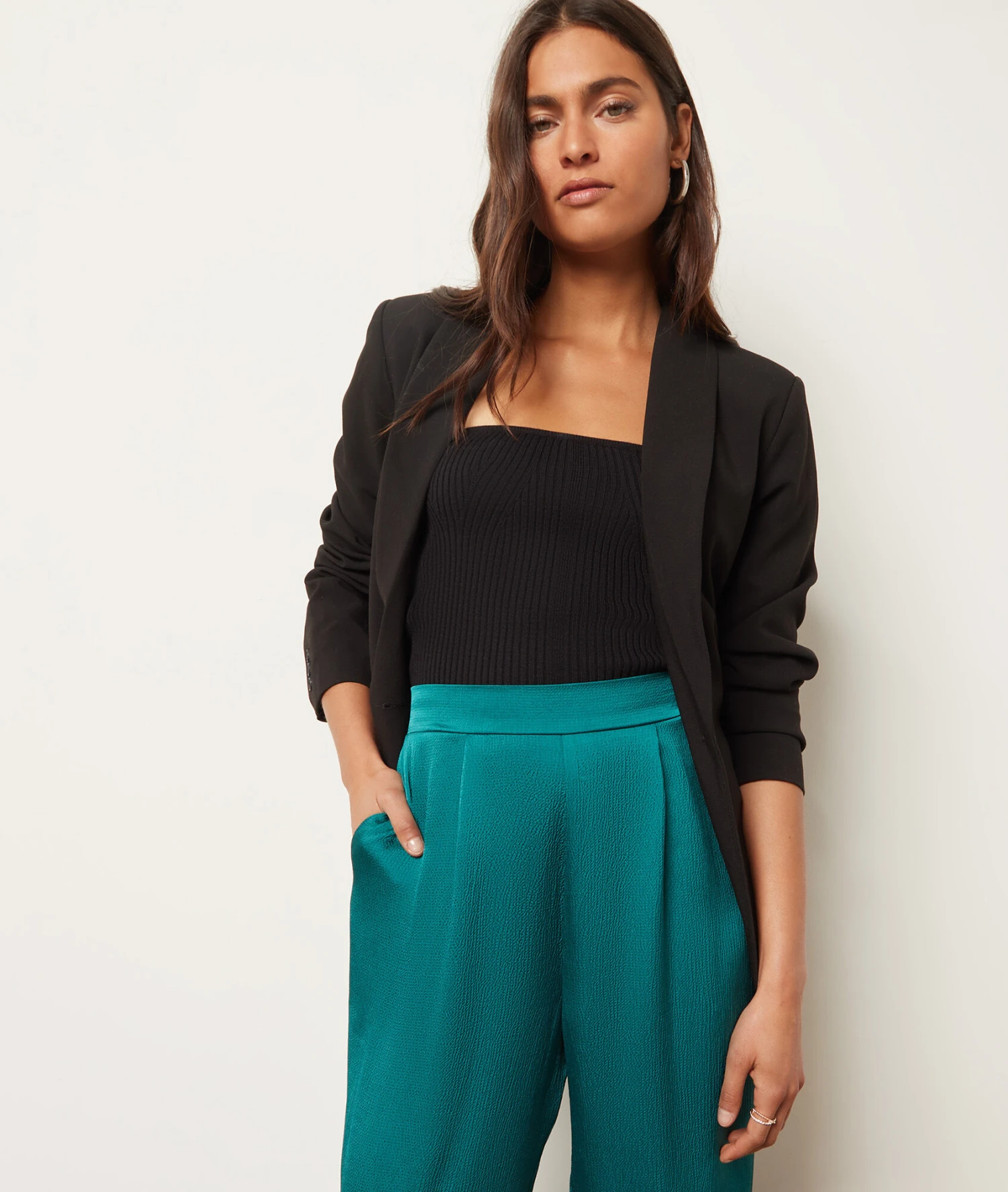 Ce pantalon fluide satiné deviendra l’allié de toutes vos tenues chics. Muni de deux poches avant et d’une ceinture élastique à la taille, il dévoile une coupe large pour passer des soirées confortables et élégantes.