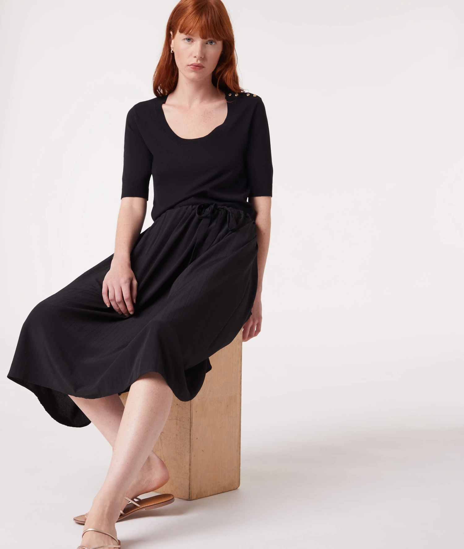 Une maille fine et légère pour créer de jolis looks d’hiver : ce pull muni d’un col rond affiche un détail boutonné à l’épaule.
