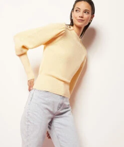 Une maille douce et moelleuse se révèle sur ce pull orné d’œillets aux épaules. Avec ses épaules bouffantes et ses poignets resserrés, il redéfinit les volumes de la silhouette.