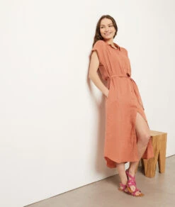 Un véritable essentiel de l’été : laissez-vous séduire par cette robe longue et fluide en gaze de coton. Munie d’un col chemisier et de manches longues, elle se porte aussi bien avec des baskets qu’avec des bottines pour un look décontracté chic.