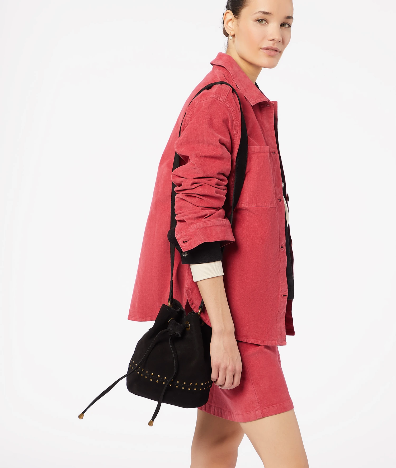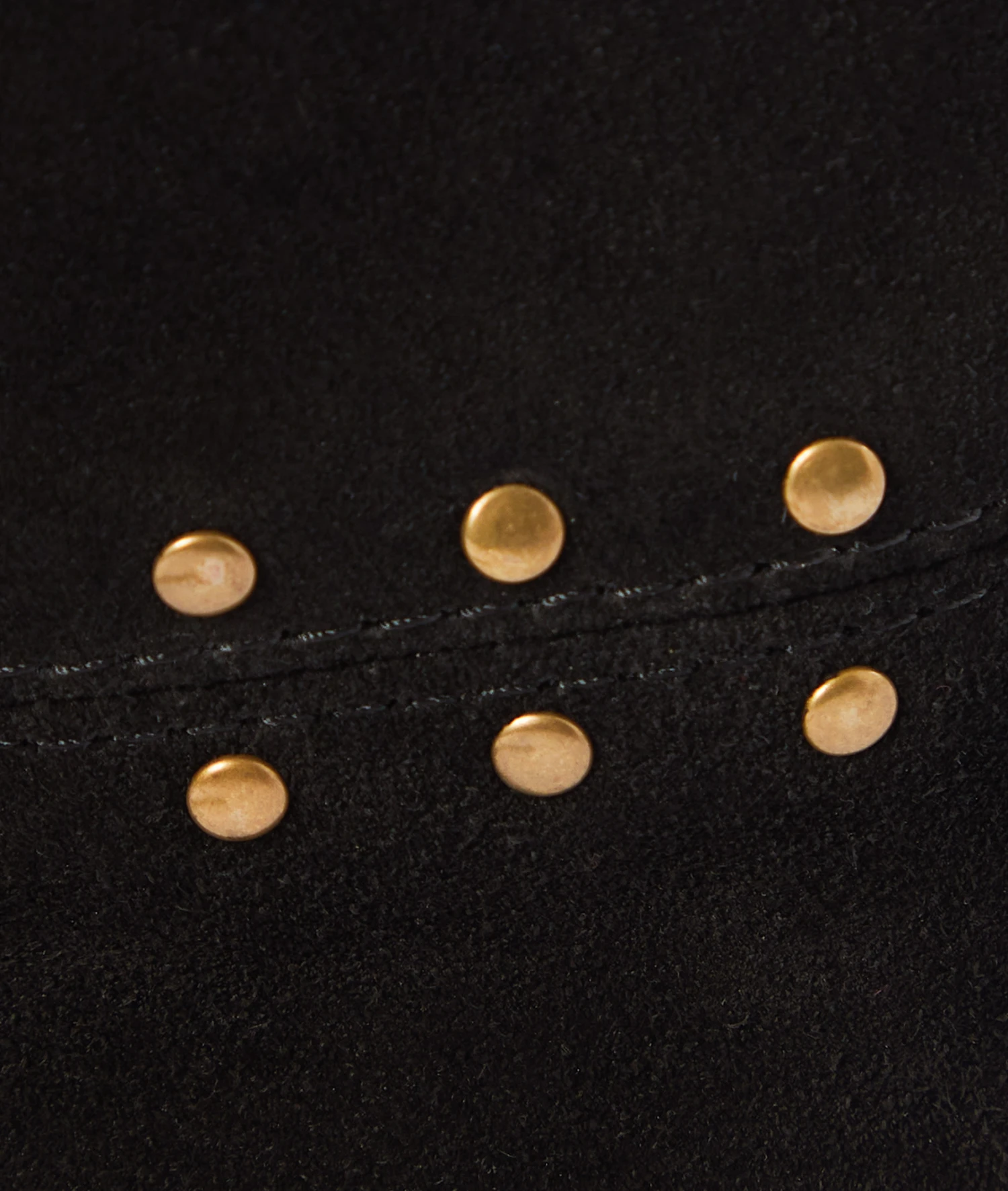 Chic et ultra pratique, cette petite bourse cloutée effet cuir s’emporte partout, et s’adopte du matin au soir. $