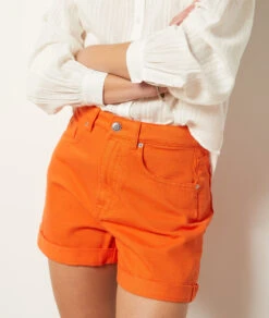 Un essentiel de la saison estivale. Le short en jean est ici revisité dans une couleur pop et adopte une coupe droite. Associez le facilement à toutes les pièces de votre vestiaire.