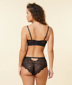 Une collection privée de haute lingerie au chic effortless : entre tulle transparent et soie précieuse, les courbes se dévoilent avec délicatesse, subliment le corps et exaltent l’esprit. Midnight : La rencontre inédite entre savoir-faire et modernité. Le tulle joue à cache-cache avec la peau et s’habille de soie précieuse sur ce soutien-gorge demi-lune ultra sensuel qui galbe et dévoile le décolleté en toute légèreté. • Soutien-gorge• Coques fines sans ajout de volume • Jeu de surpiqûres• Armatures• Soie et tulle• Anneaux dorés • Bretelles ajustables• Agrafes dos