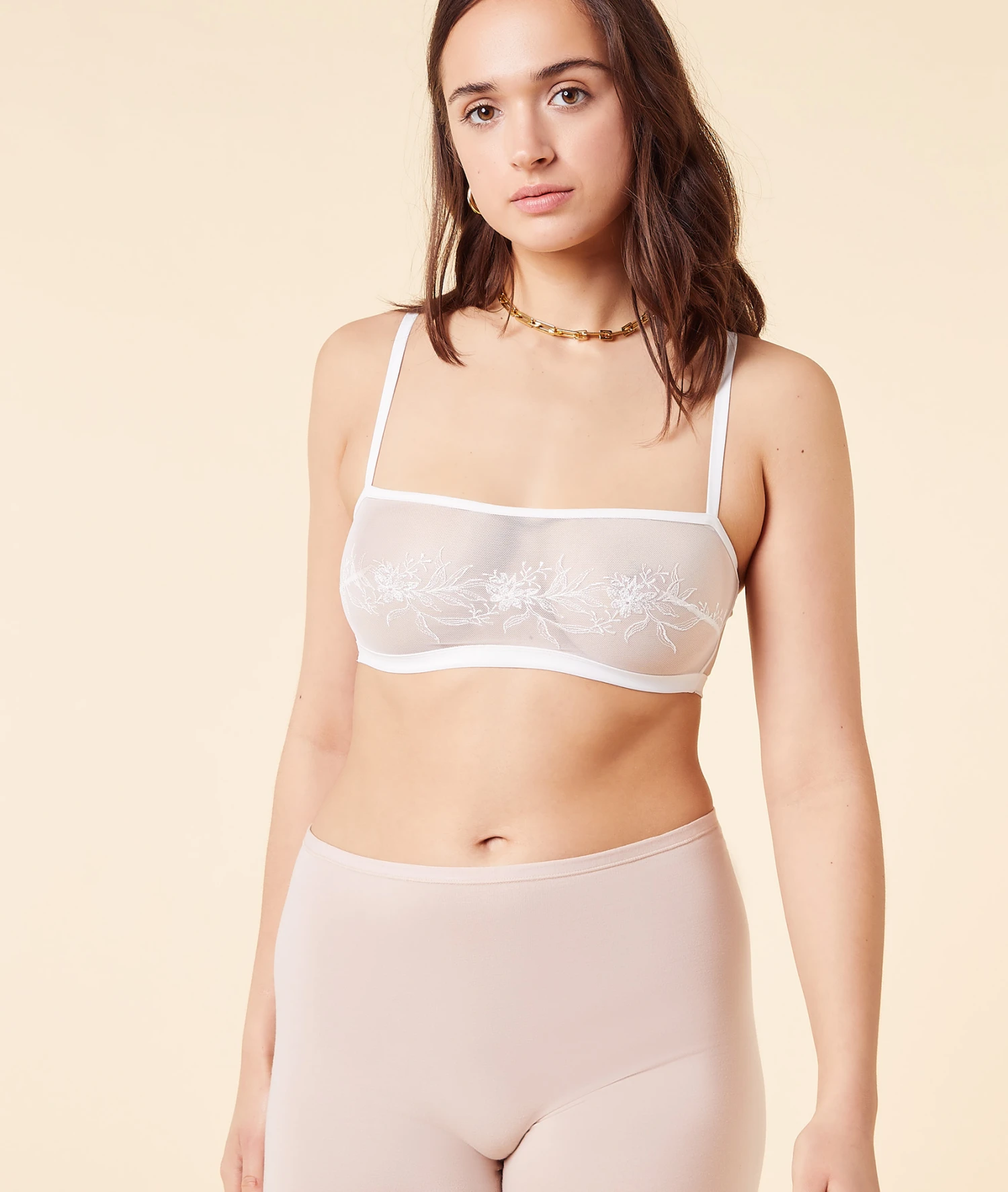 Délicatement brodé de motifs floraux, la corbeille Jane incarne tout le savoir-faire corsetier d’Etam. Elle dévoile un tulle délicatement brodé de motifs floraux, et joue la transparence.