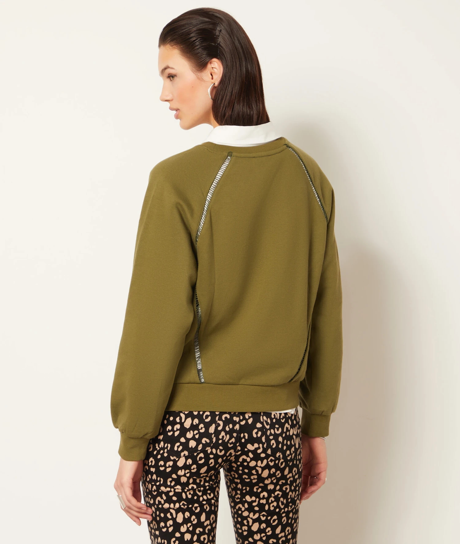 Casual et effortless, le sweat en coton est revisité dans une version structurée ornée de bandes ajourées devant. Muni d’un col rond et de manches longues, il s’associe à un pantalon imprimé ou un jean flare pour un outfit tendance.