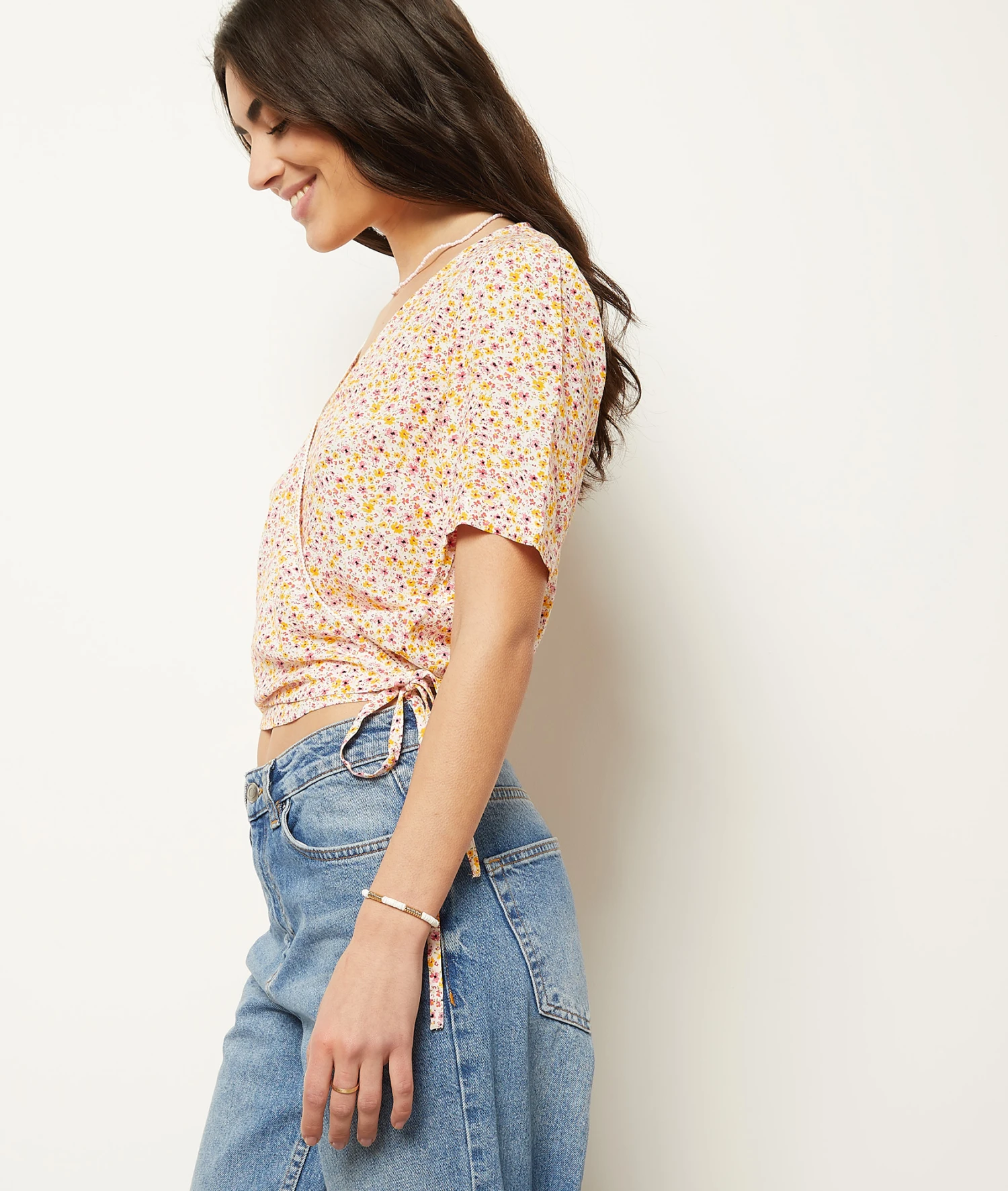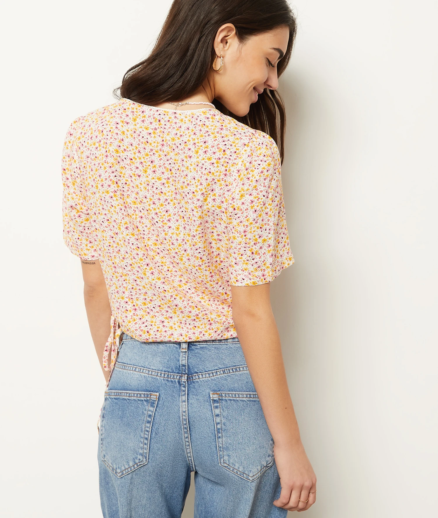 Craquez pour la forme cache-cœur ultra féminine et le motif fleuri estival dessiné sur ce top sublime. Muni d’un col V et de manches courtes, il s’associe à un jean pour un look de mi-saison tout en douceur.