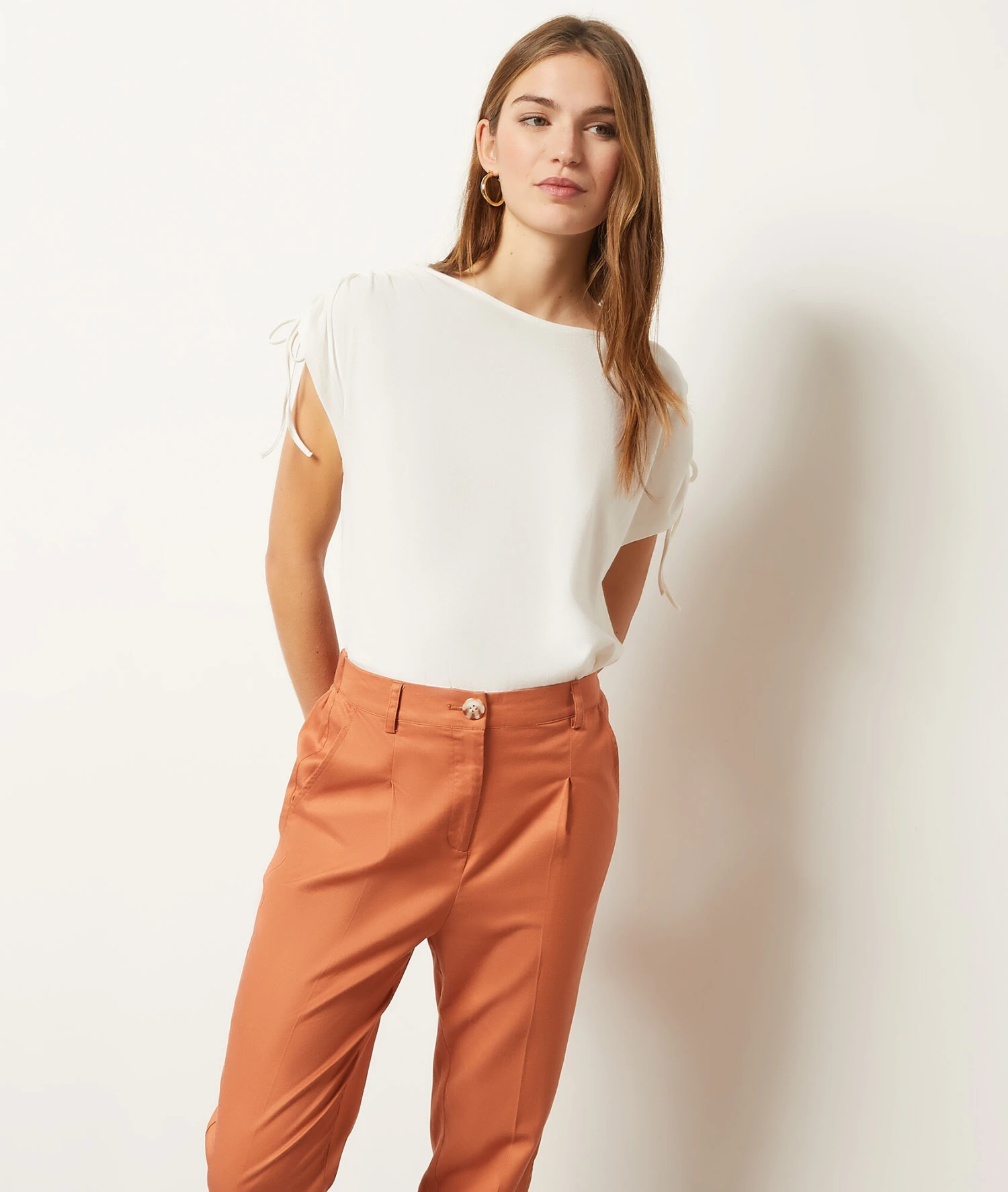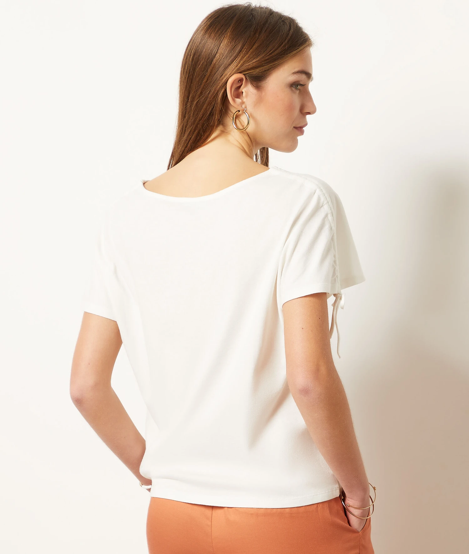 Des liens coulissant aux épaules revisitent ce basique incontournable. Confectionné en coton, il dévoile un col rond et des manches courtes, pour un look alliant confort et style.
