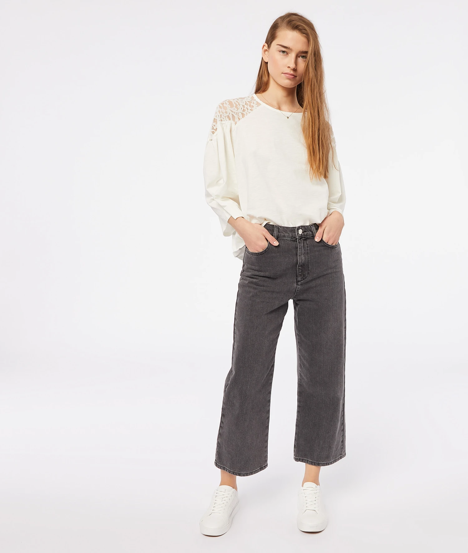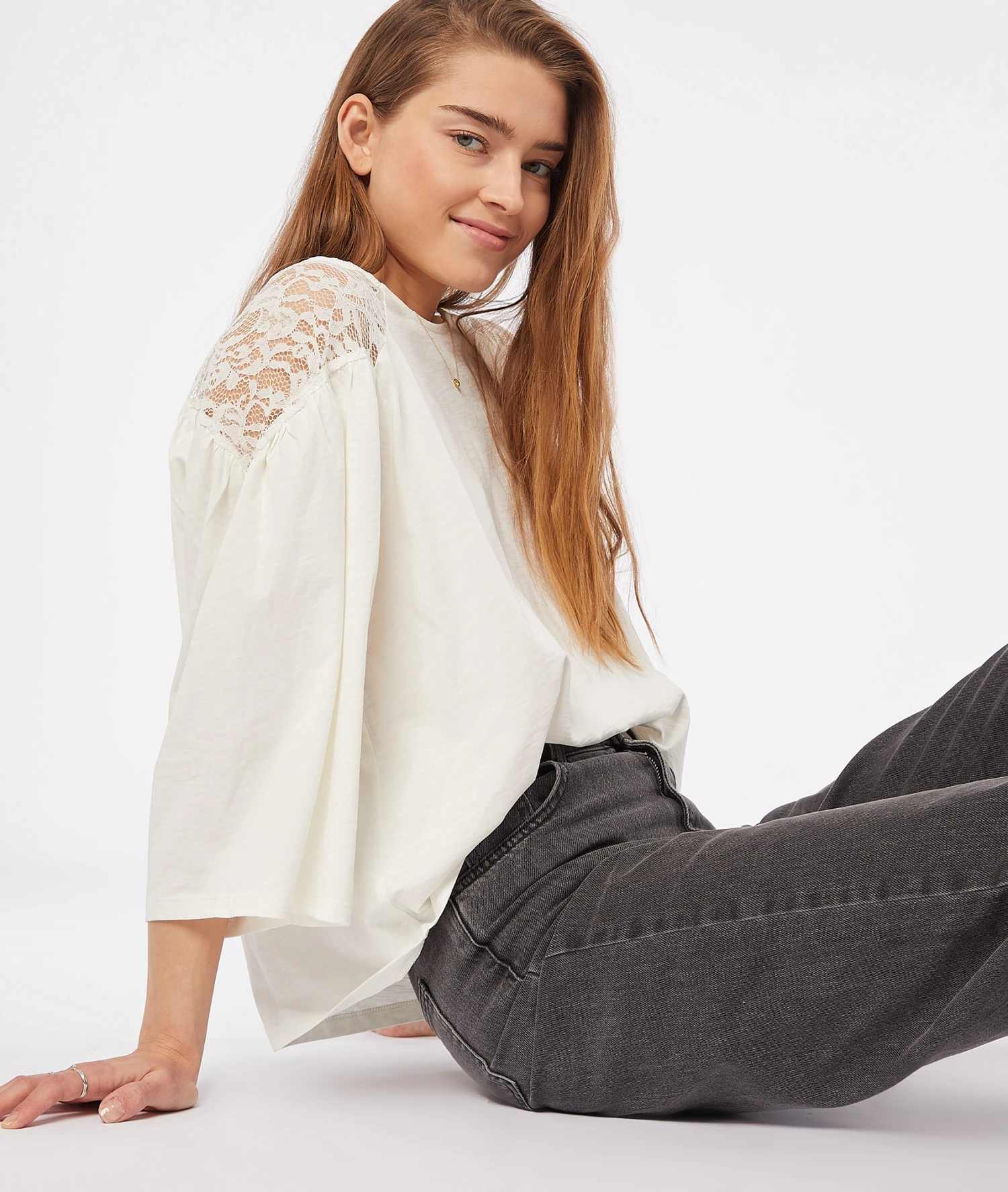Légère et vaporeuse, cettte blouse à manches volumineuse dévoile des émpiècements en dentelle transparente aux épaules. Un incontournable à mixer avec tous vos loooks.