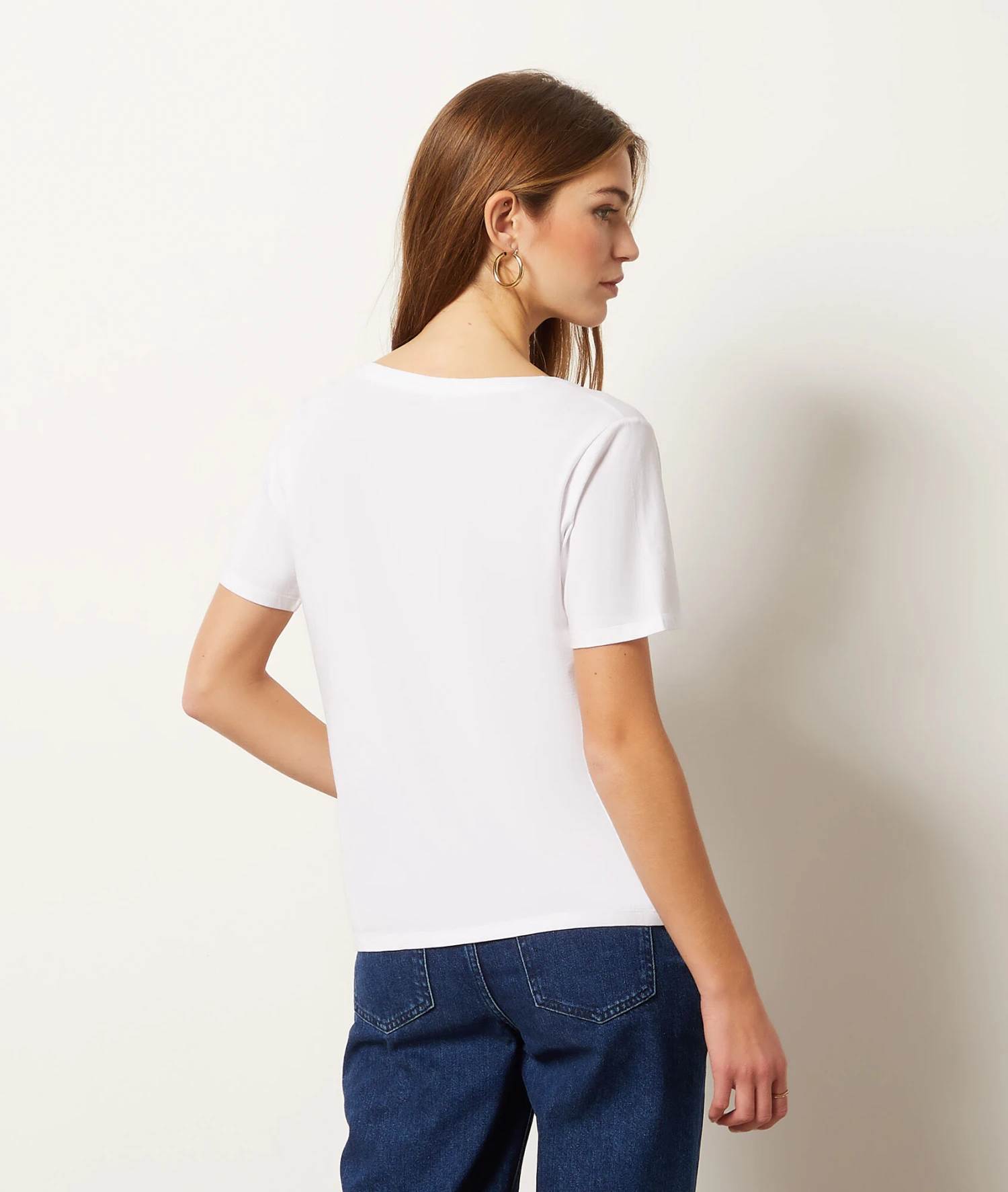 Pas si basique… Le bon tee-shirt c’est celui qui adopte la coupe parfaite et la matière la plus douce. Pari gagné avec cette version au col V en coton bio.