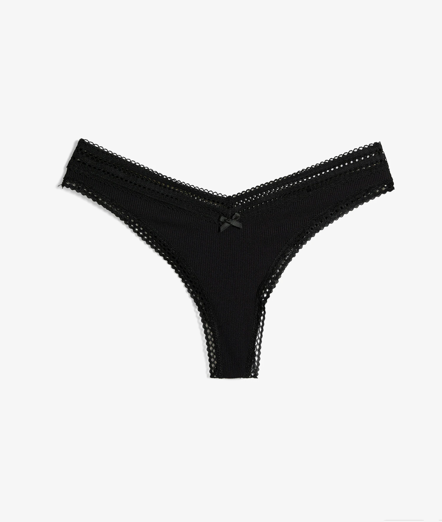 Un tanga échancré en V et délicatement bordé de dentelle : crush !