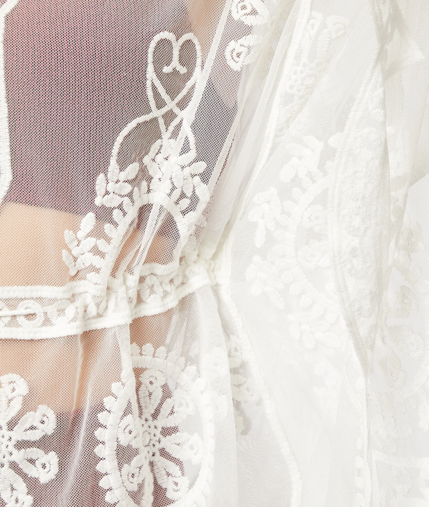 Ornée de délicates broderies, cette tunique de plage confectionnée en résille transparente dévoile votre maillot de bain avec subtilité. Munie d’un décolleté en V et de manches longues, elle se ceintre à la taille.