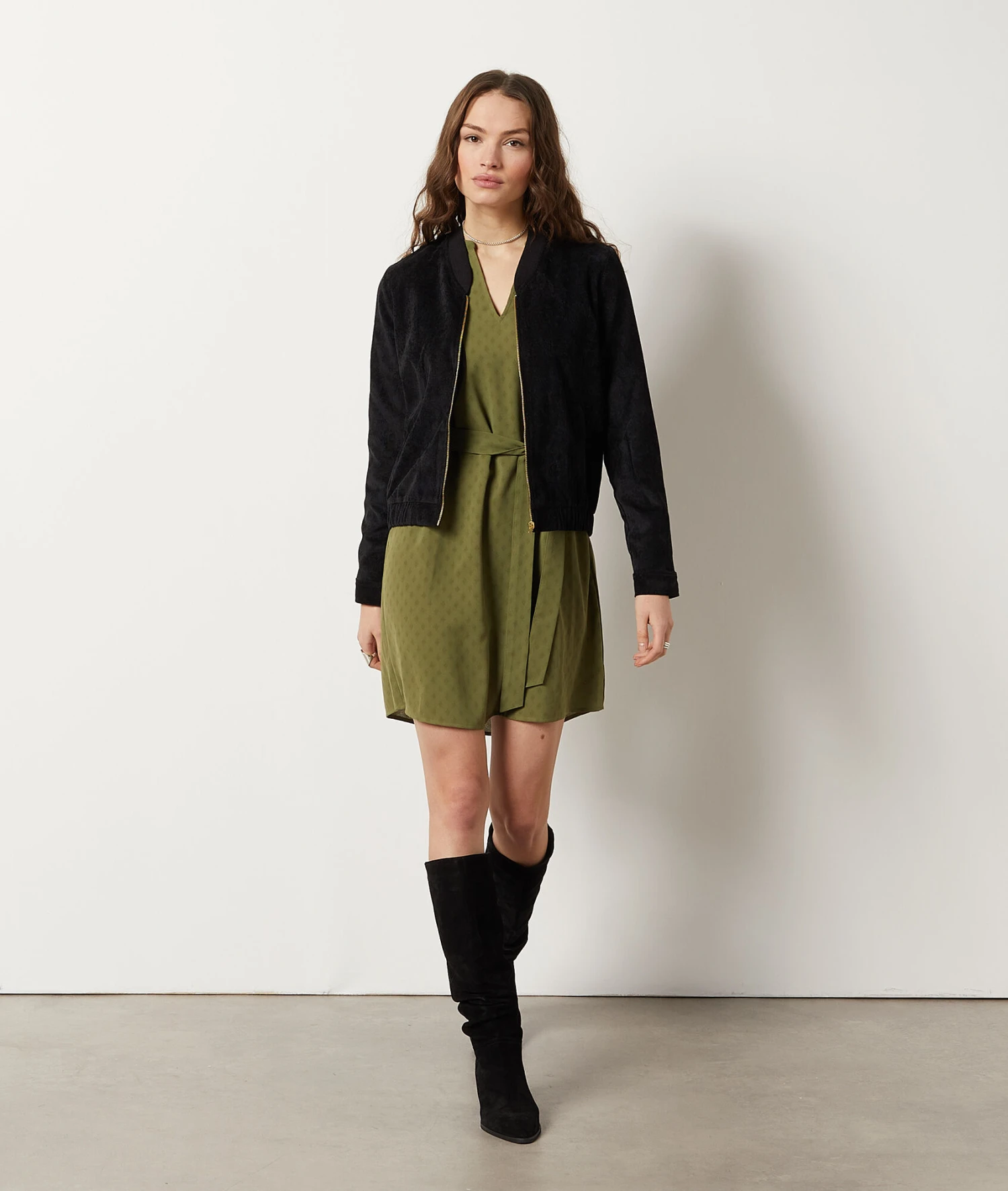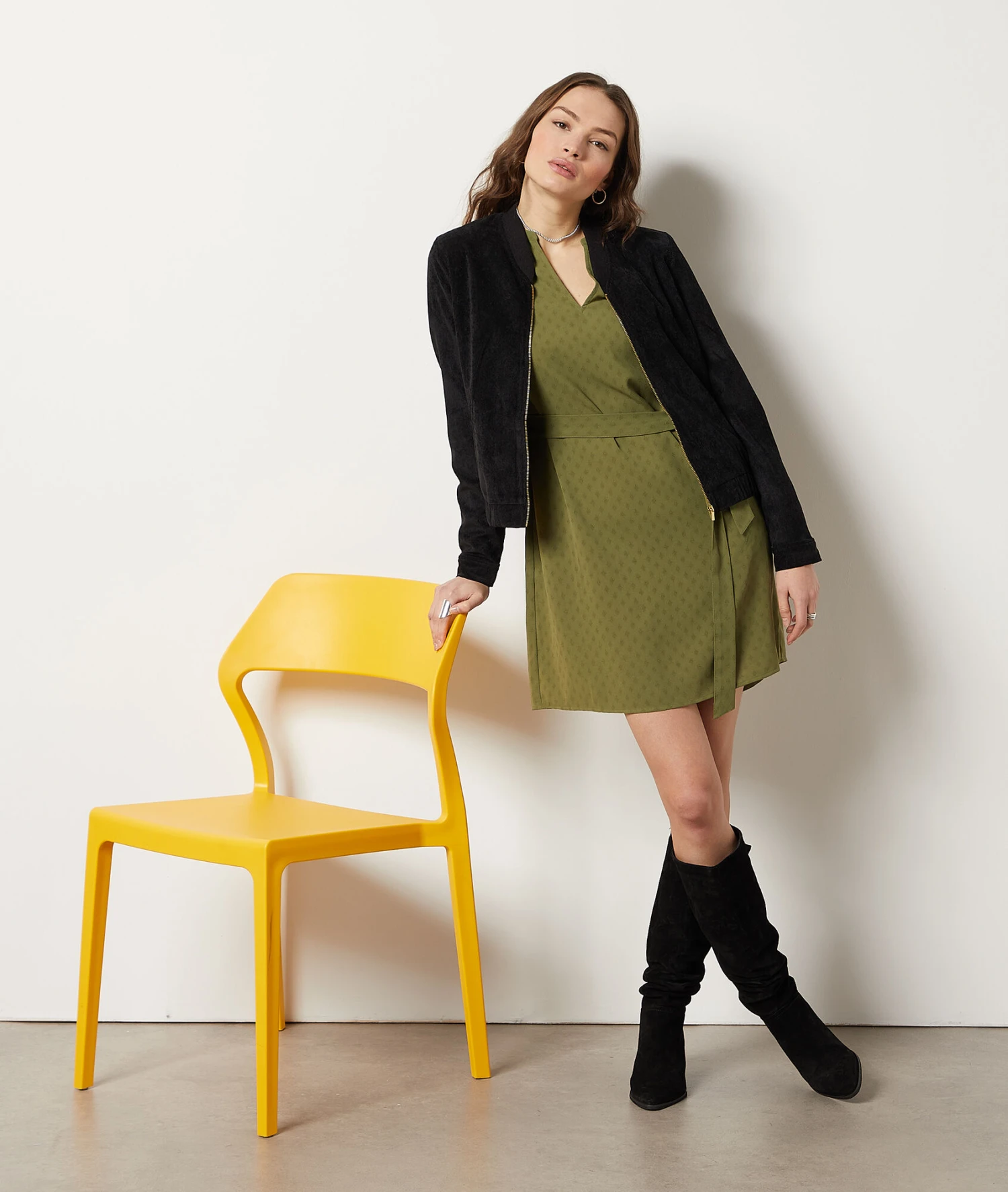 Le velours cotelé est de retour, sur une pièce iconique. Laissez-vous séduire par la douceur de ce bomber zippé muni de manches longues.