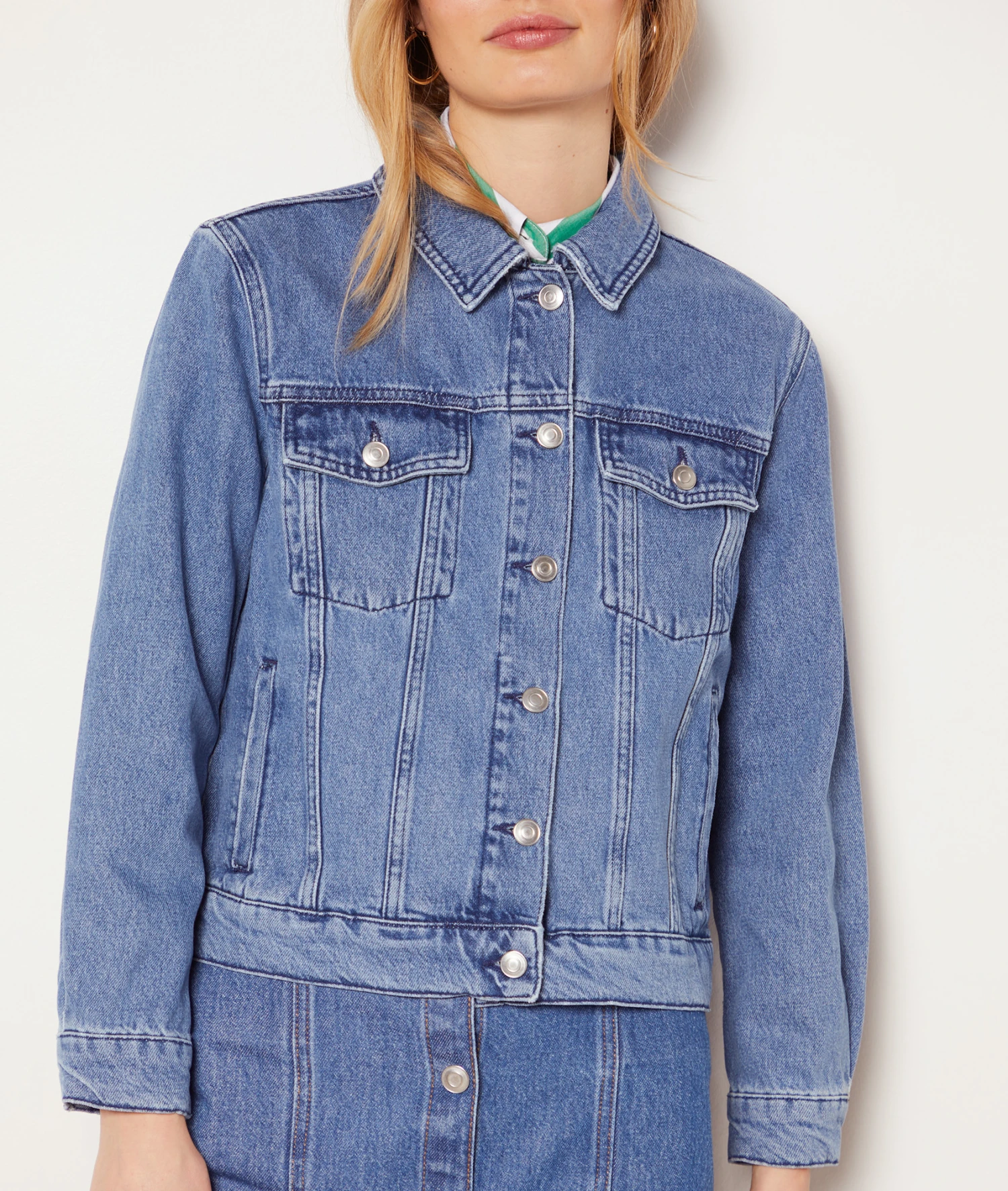 Simplement incontournable : le blouson en jean fait partie des indispensables du vestiaire de mi-saison. Boutonné et muni de poches sur la poitrine il est versatile et s’adopte avec tous vos looks.